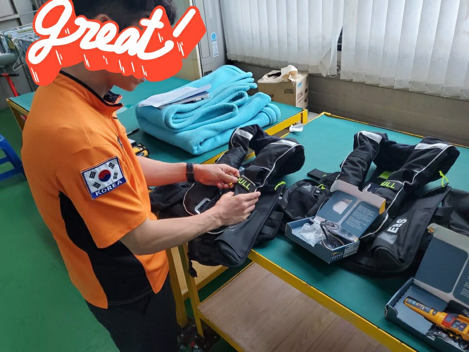 아직도 가랭이 연결끈을 잘라서 착용하는 잘못된 구명조끼를 항공용으로 공급하는곳이 있는것 같습니다.