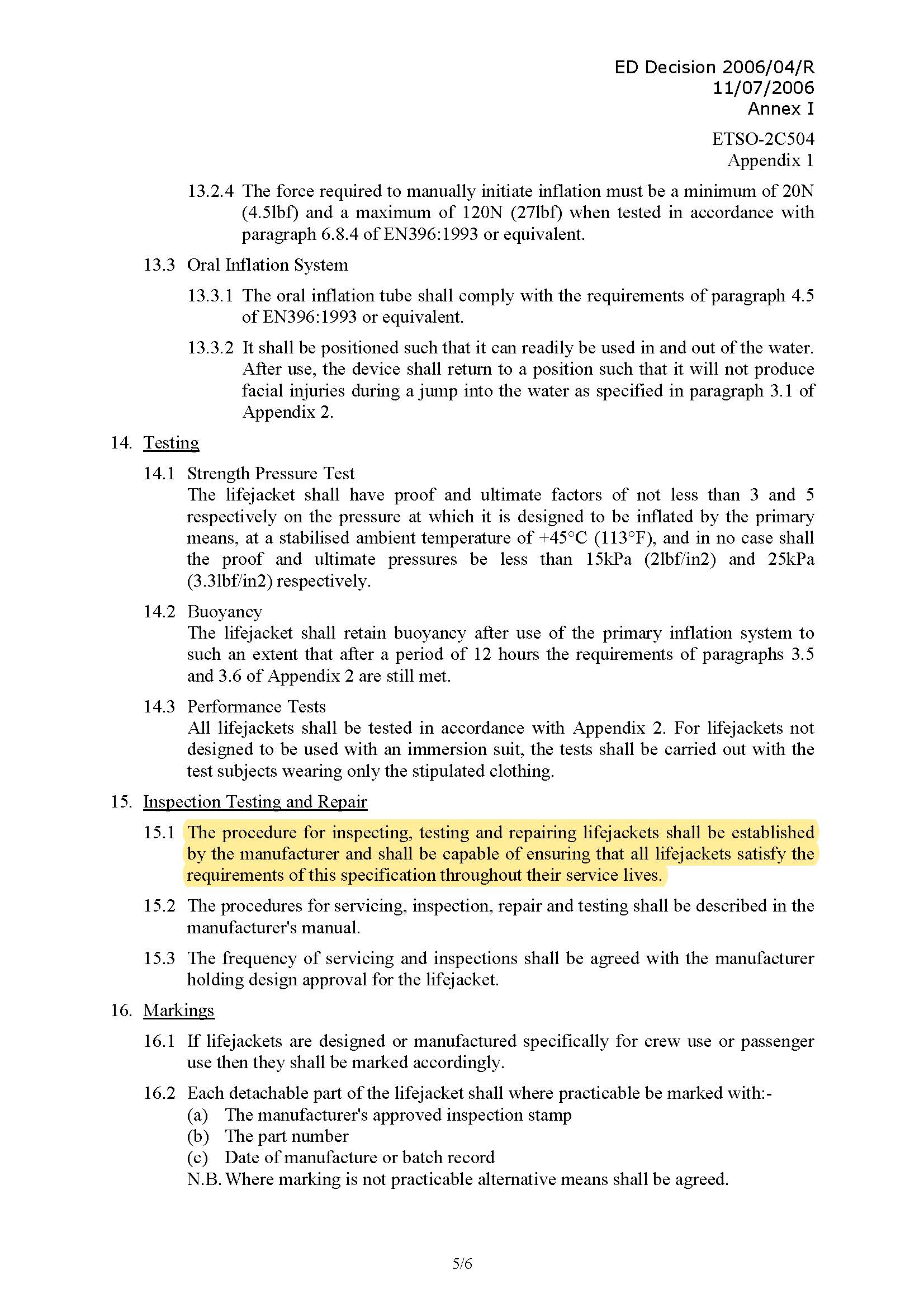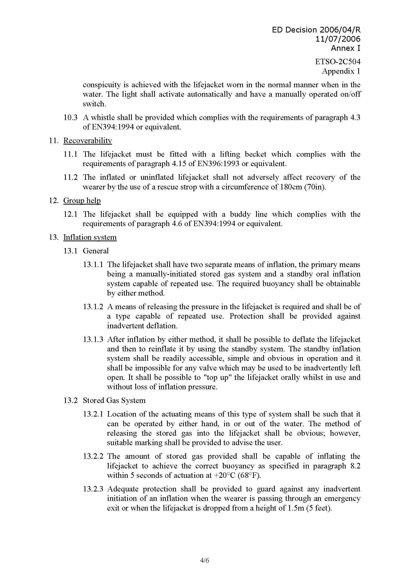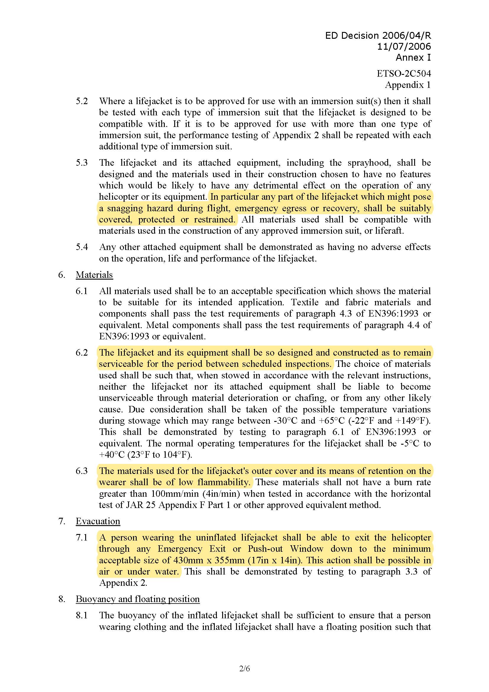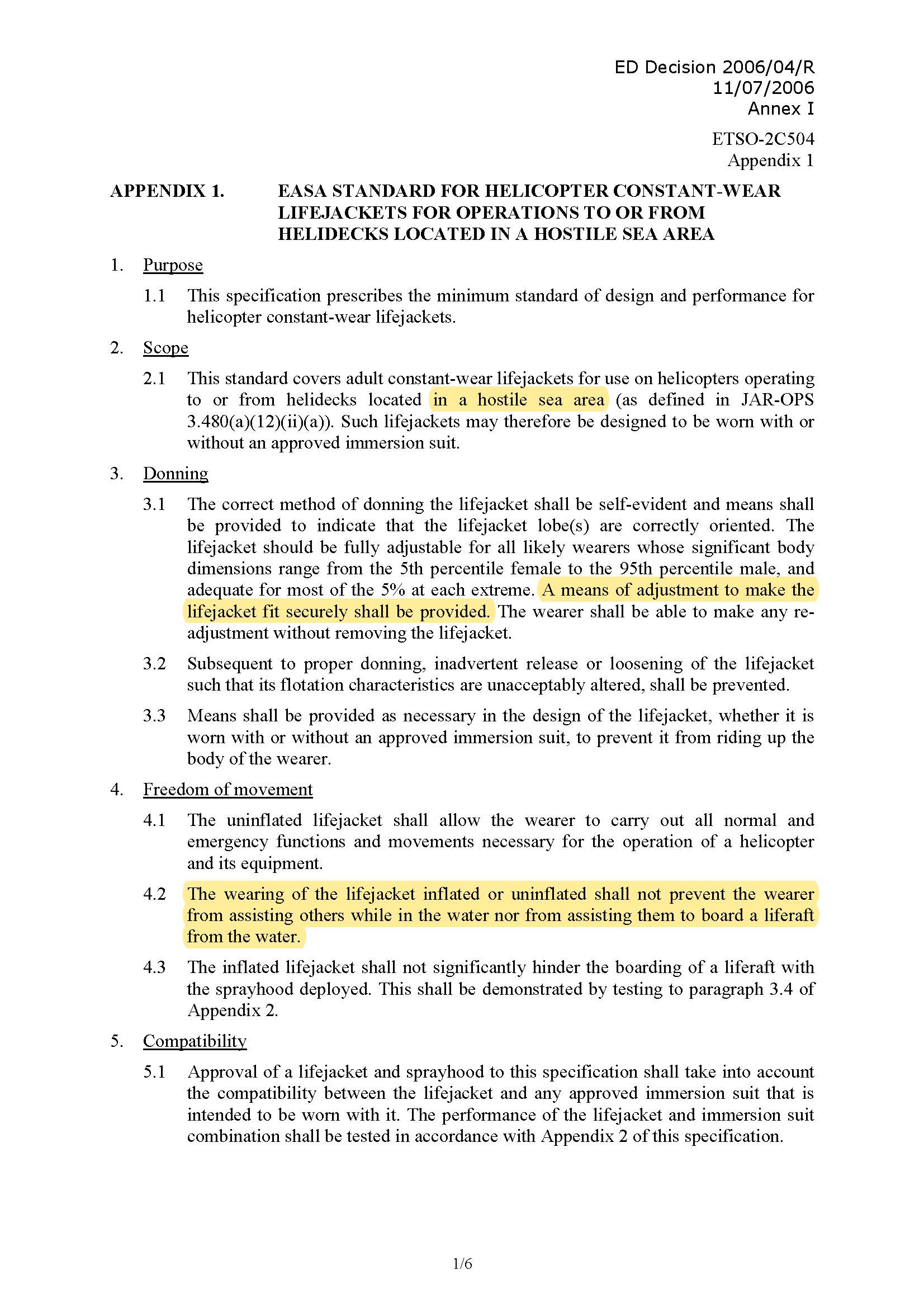 헬리콥터 생환자켓이 일반 구명조끼나 워크베스트와 다른 부분은, EASA의 ETSO에서 몇몇 언급을 하고 있으나 대표적으로는;