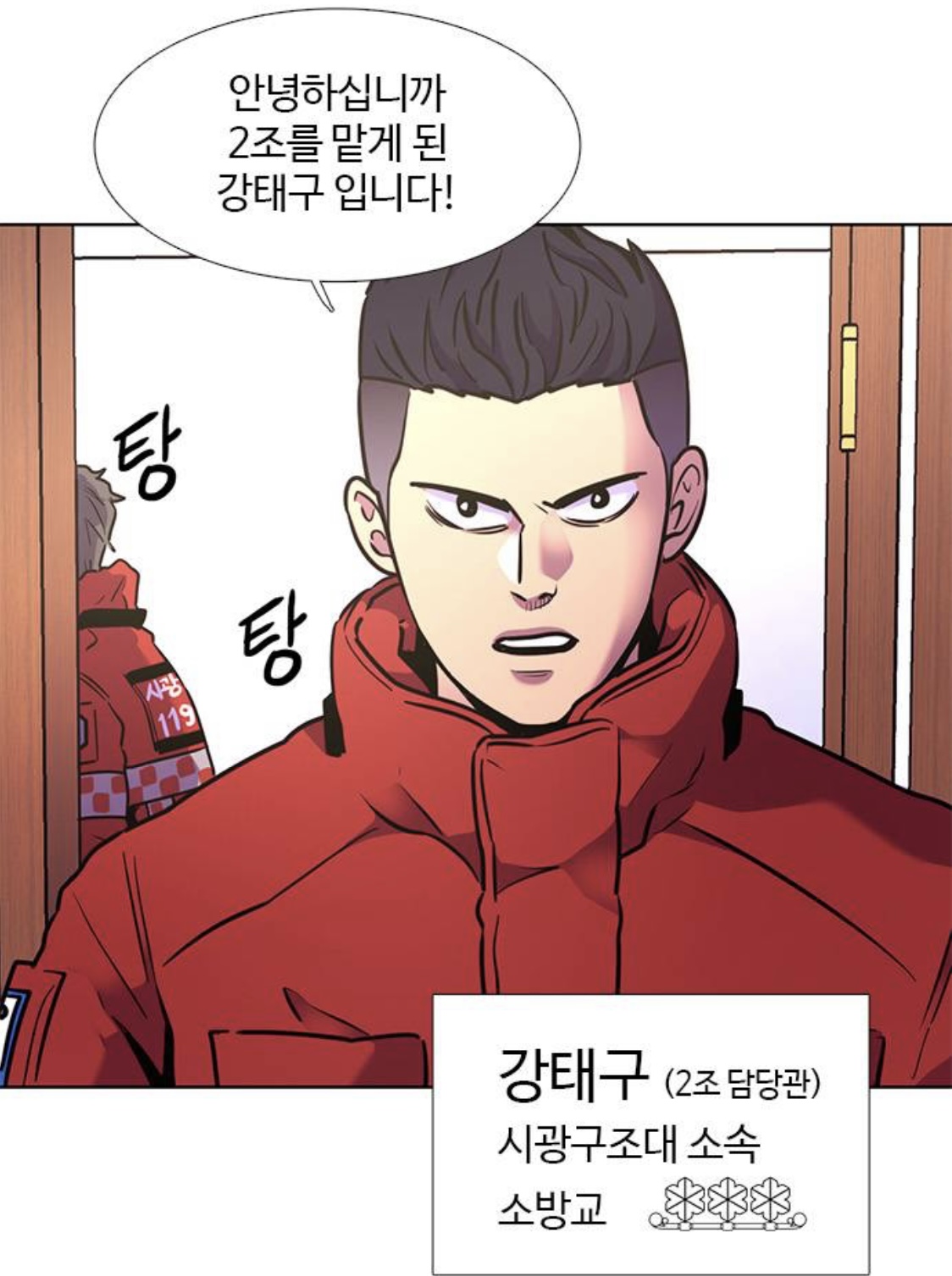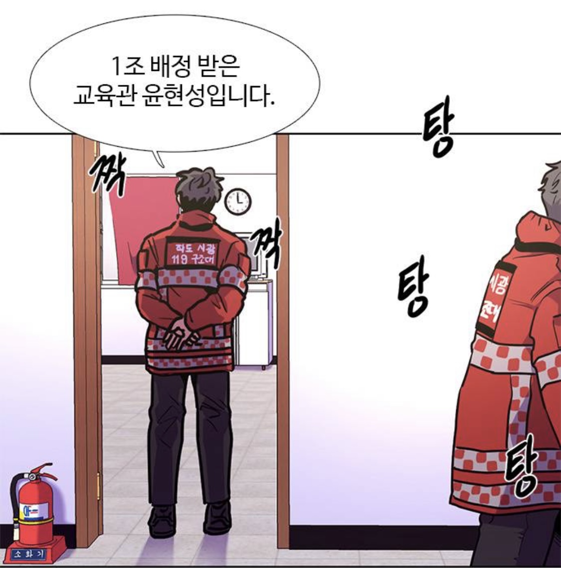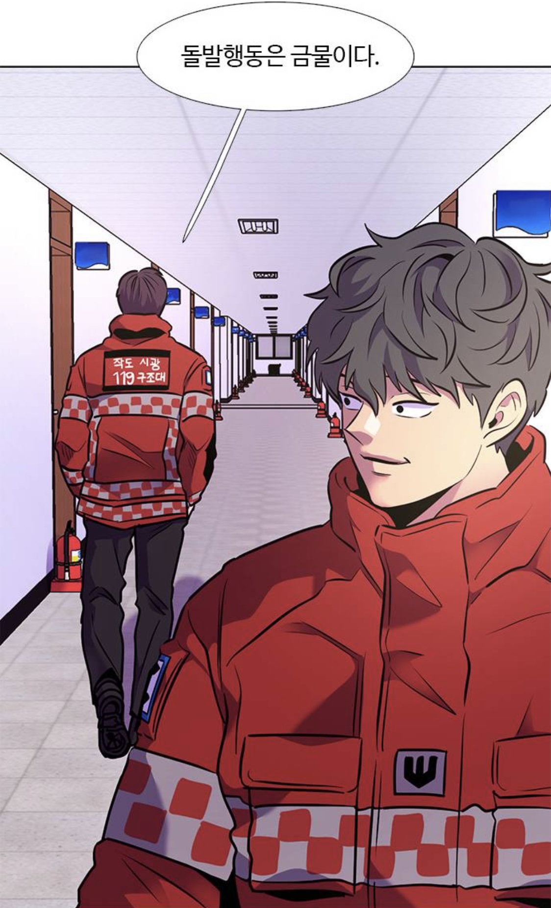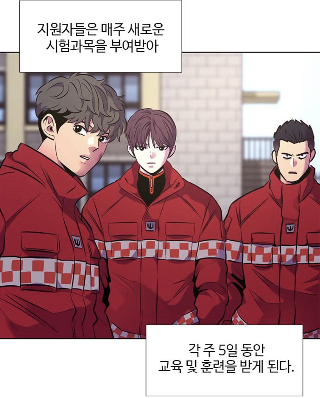 네이버 웹툰 '1초' 147화 구조대 본시험 1주차(1), 소방관방한복 바이킹방한복~