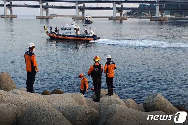 (부산=뉴스1) 이유진 기자 = 1일 오후 4시50분께 부산 수영구 남천동 테트라포드 위를 거닐던 30대 남성 A씨가 추락했다.