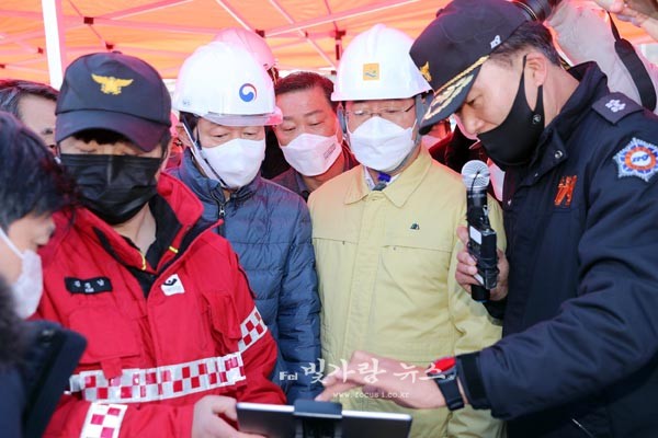 김영록 전라남도지사는 14일 화학공장 폭발로 화재가 발생한 여수산단 이일산업(주)을 방문해 “화재 원인을 신속히 규명하고, 재발 방지를 위해 노력해달라”고 당부했다.