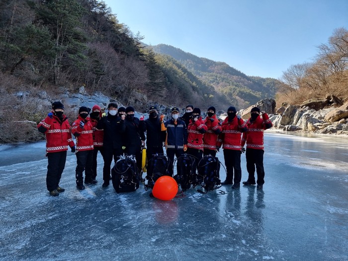이번 훈련은 동절기·해빙기 수난 사고 대비 얼음 밑 폐쇄공간과 차가운 물 등 특수 환경에 구조대원이 적응해 초기 재난수습능력배양을 위해 진행됐다.