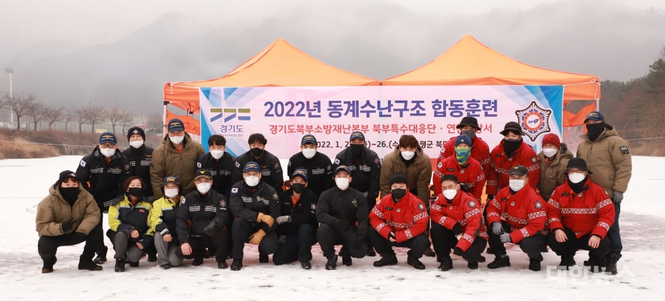 [대한뉴스=이용춘 기자] 경기도북부소방재난본부(본부장 고덕근)는 25~26일 양일간 가평군 북면 배터유원지에서 혹한기 내수면 수난사고 대응능력 강화를 위한 ‘2022년 동계수난구조 합동훈련’을 실시했다고 26일 밝혔다.