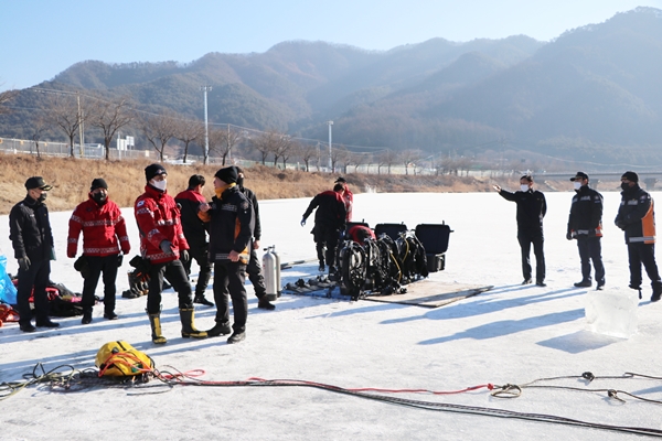 훈련 내용으로는 ▲현장 활동 안전사고예방을 위한 위험예지 교육 ▲동절기 수난사고 대비 수난구조장비 사용법 훈련 ▲동절기 익수자 인명구조 훈련 등을 실시하며 현장 대응능력을 갖추는 시간을 가졌다.