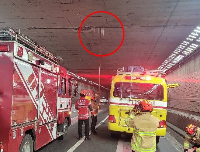 5일 인천 중부소방서에 따르면 이날 오후 4시 8분께 인천시 중구 신흥동 북항터널 입구 청라IC 방면 150m 지점 천장에 고드름이 달려 있다는 신고가 접수됐다.