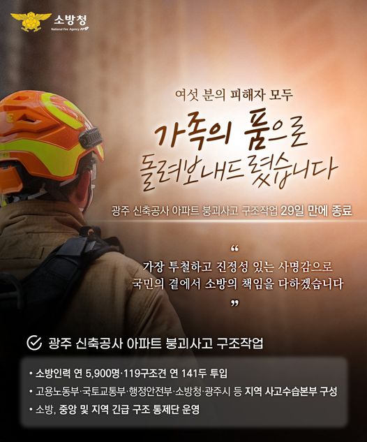 지난달 11일 발생한 ‘광주 아파트 붕괴사고’ 구조작업이 29일만인 2월 8일 종료됐습니다.