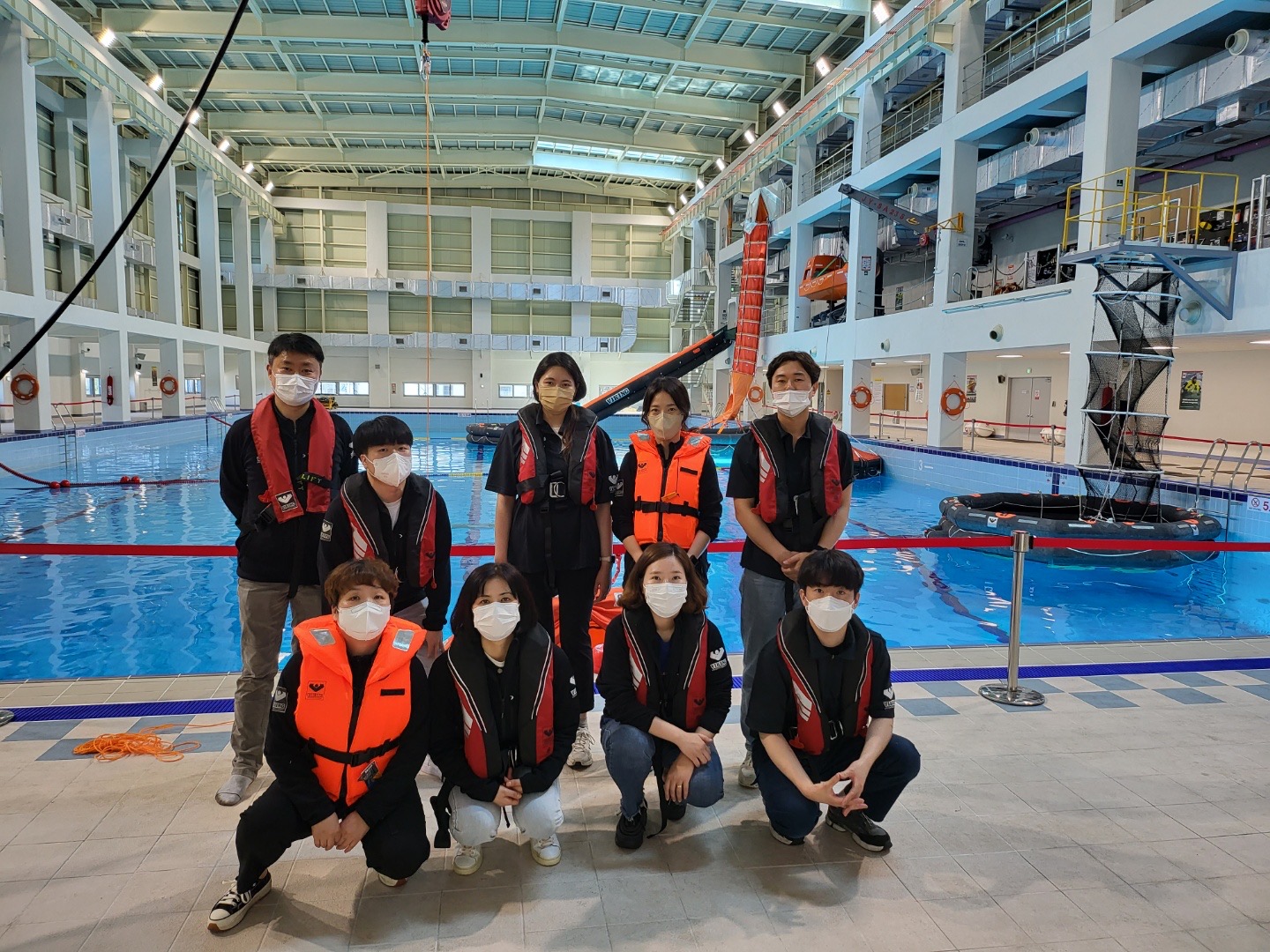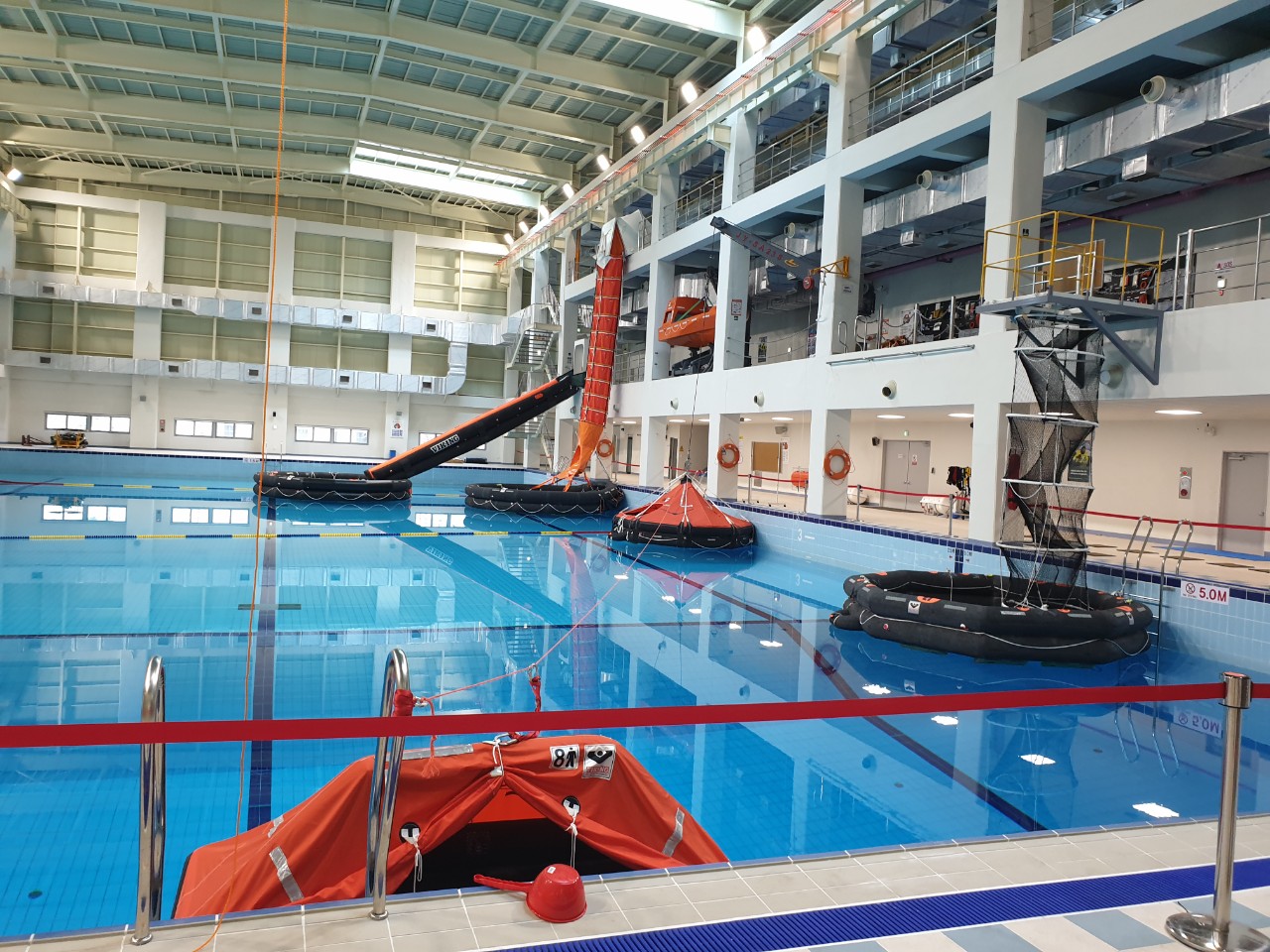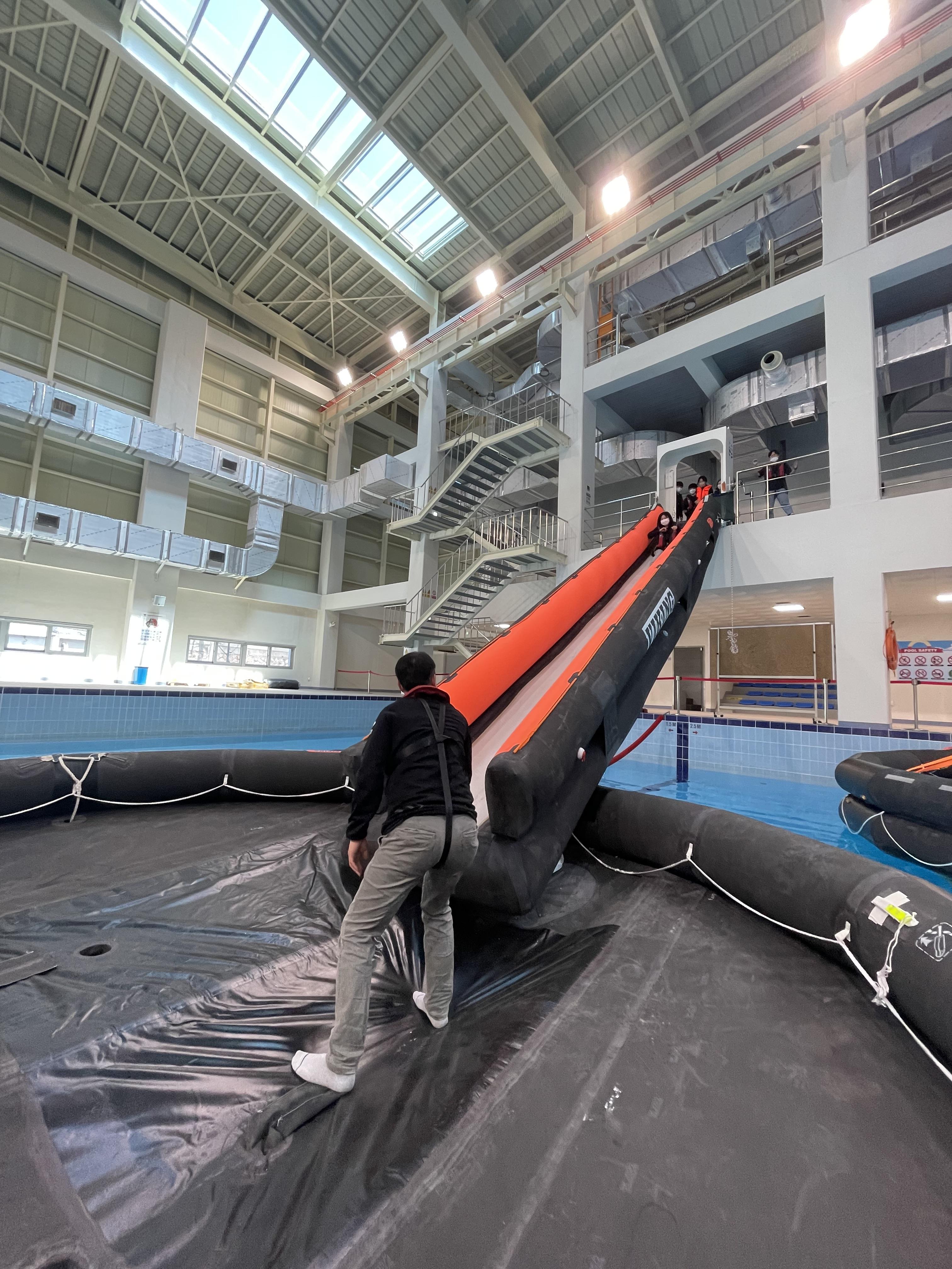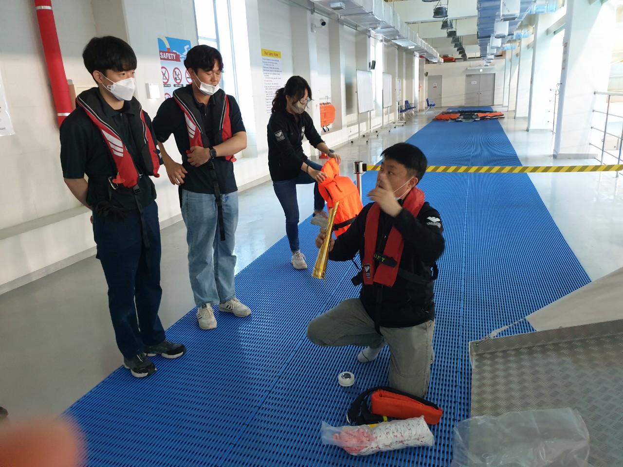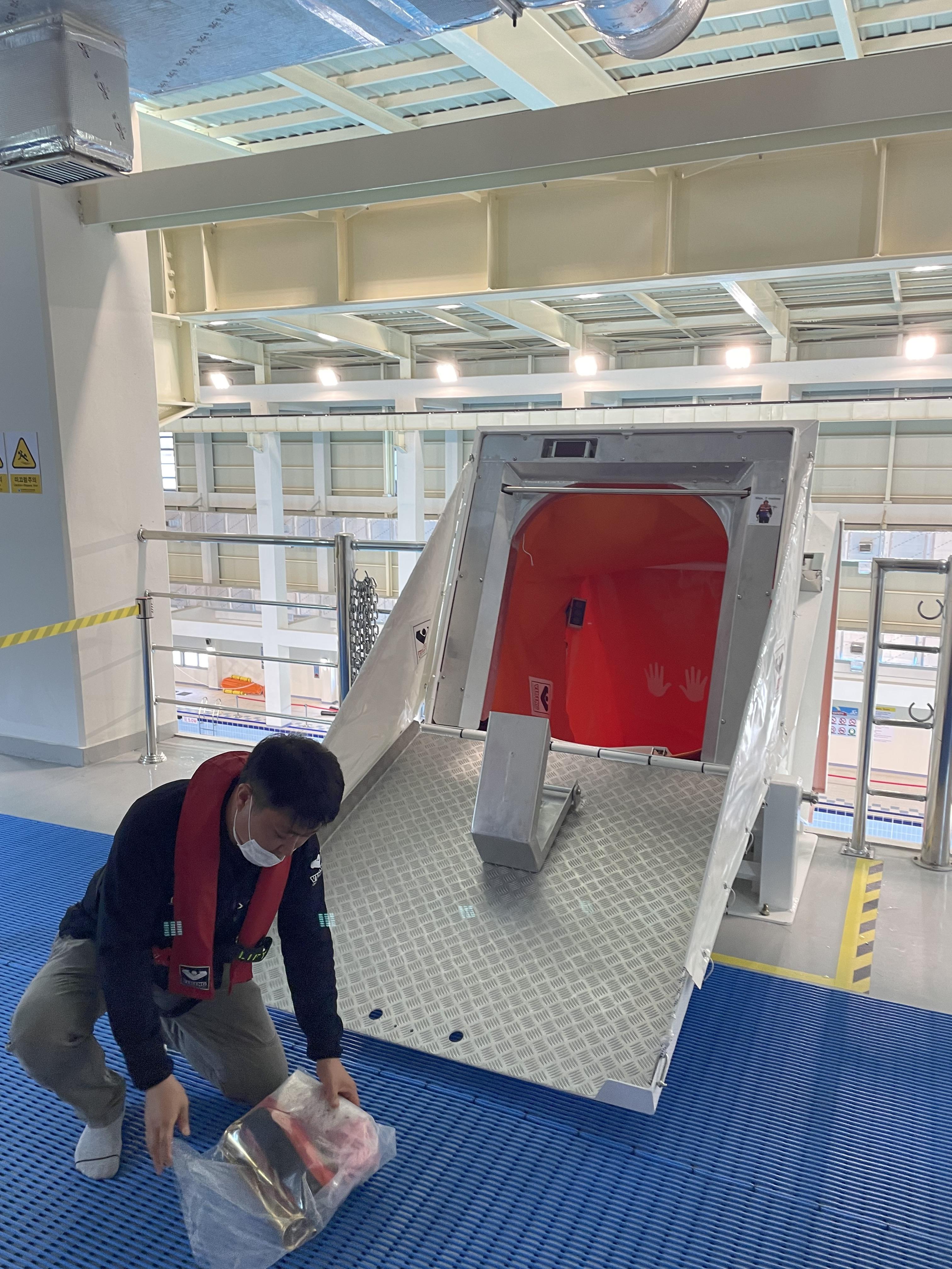 교육내용: 개인보호장비, 여객선슬라이드탈출시스템, 여객선츄트탈출시스템, 오프쇼어츄트탈출시스템, 보트, 구명뗏목등