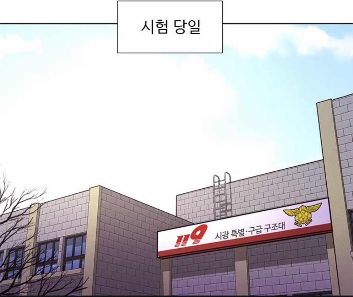네이버 웹툰 '1초' 153화, 구조대 본시험 1주차~