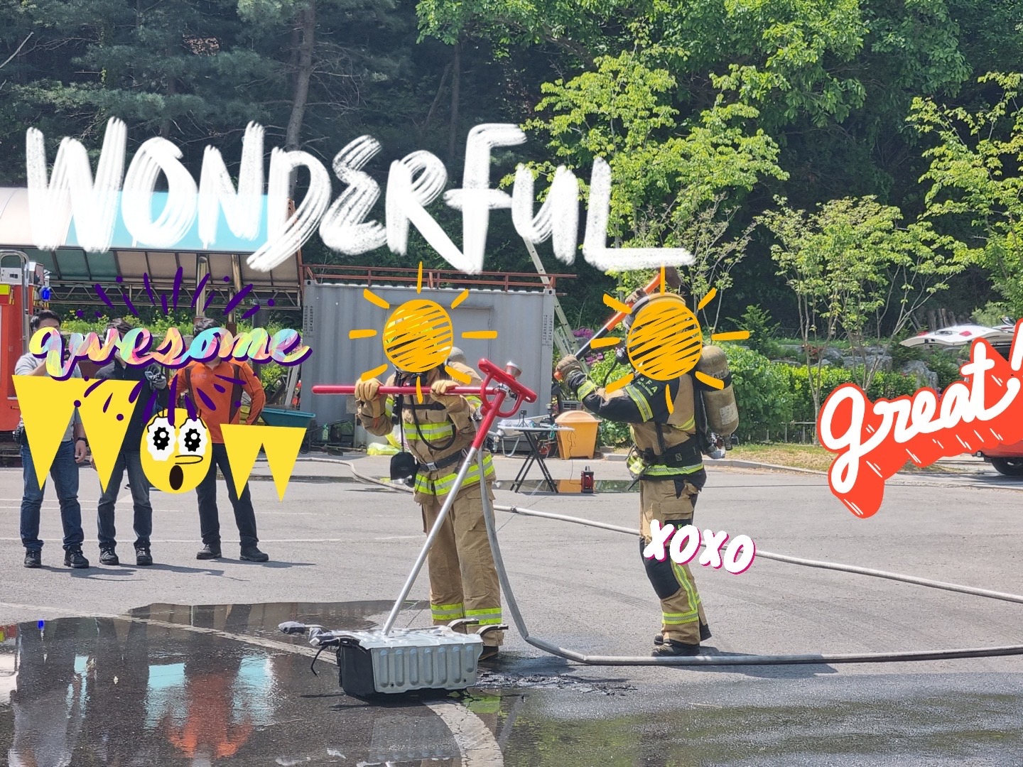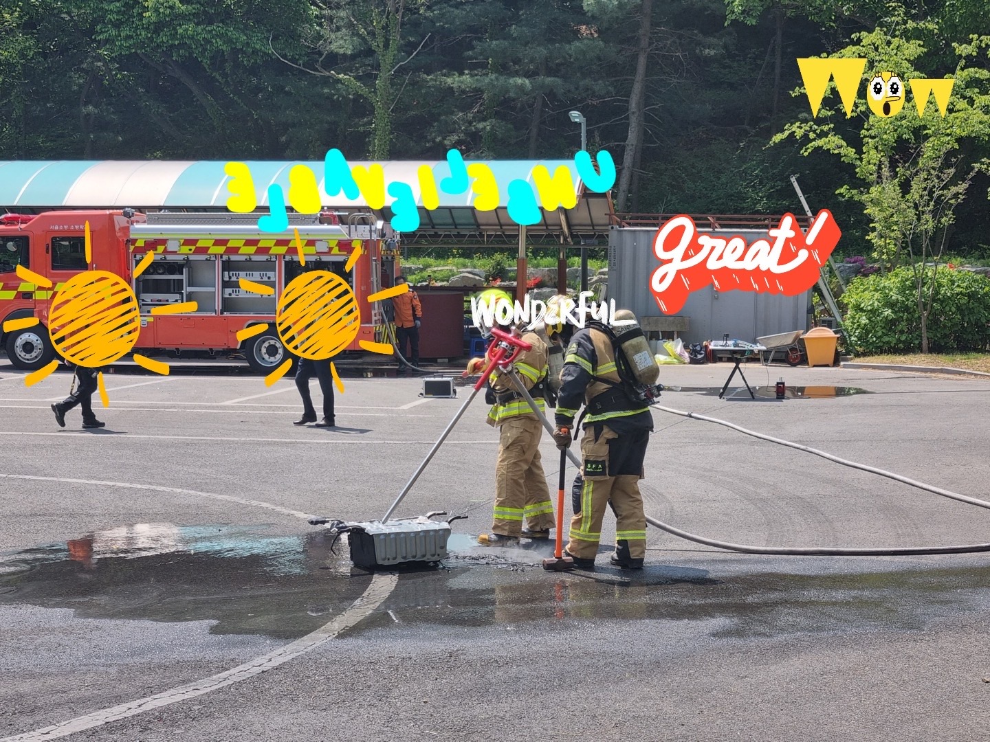 해당 시범은 매우 전문적인 화재진압대원분들이 참여하시어 진행이 되었습니다.