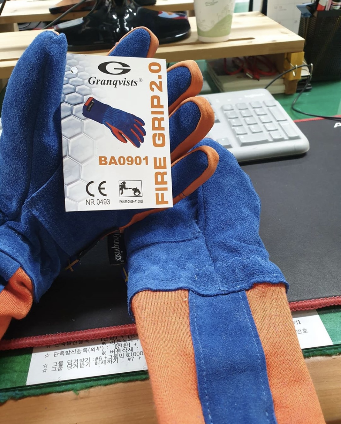 기억할 건, 화재구조장갑인데 그립감이 뛰어나다, 뛰어난 방수성능에 내피가 딸려 나오지 않는다, 바늘이나 칼날이 들어가지 않는다, 물에 미끌리지 않는다, 기계세탁이 가능하며 현장에 따라 커프(손목) 변경이 가능하다.