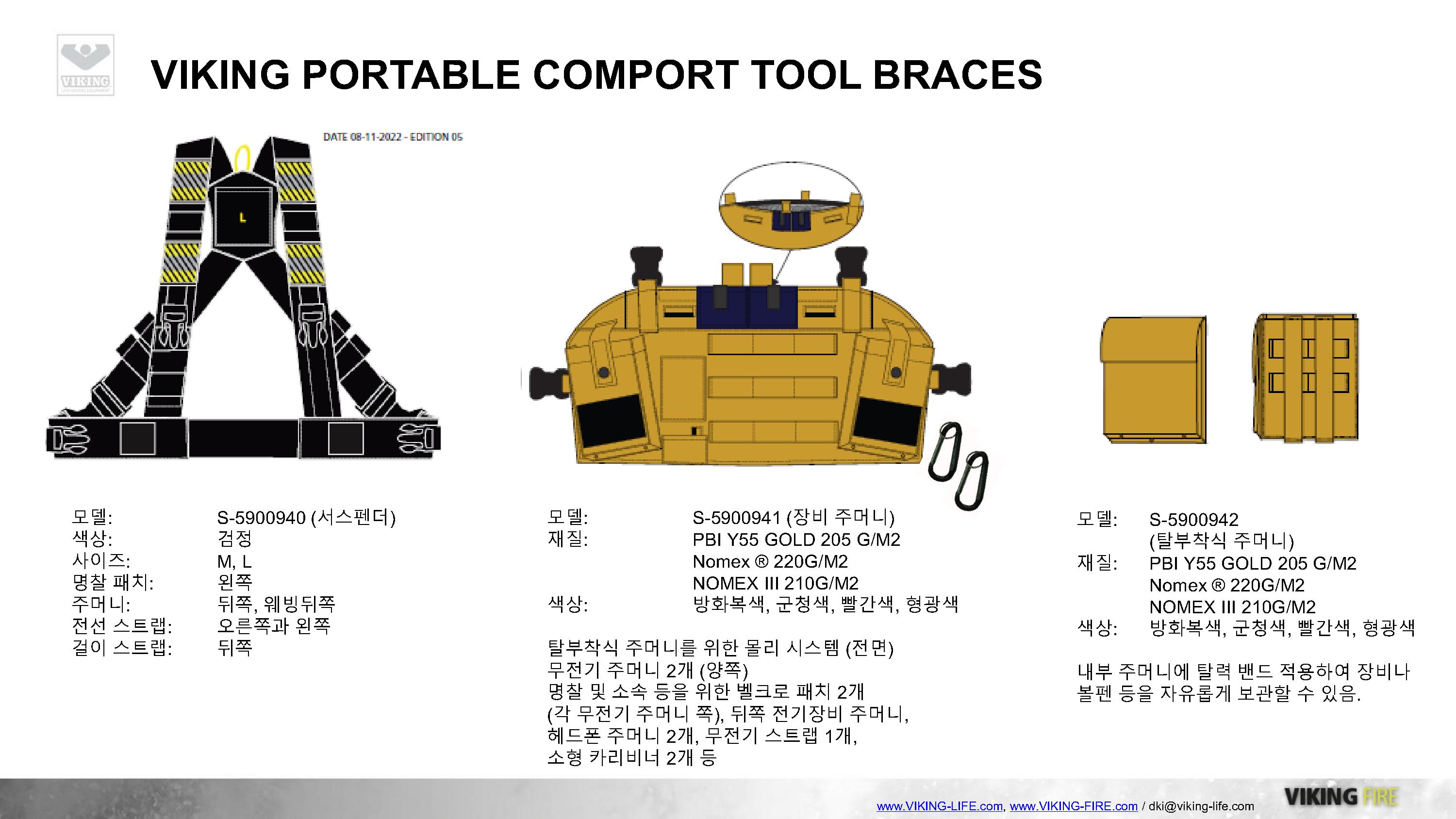 화재진압현장, 구조현장, 구급현장, 항공구조구급현장, 화학사고현장, 현장조사, 드론팀, 팀장용, 진압단속현장.... 다양한 현장에 준비된 휴대용 무전기 및 장비조끼, 오슬로베스트.