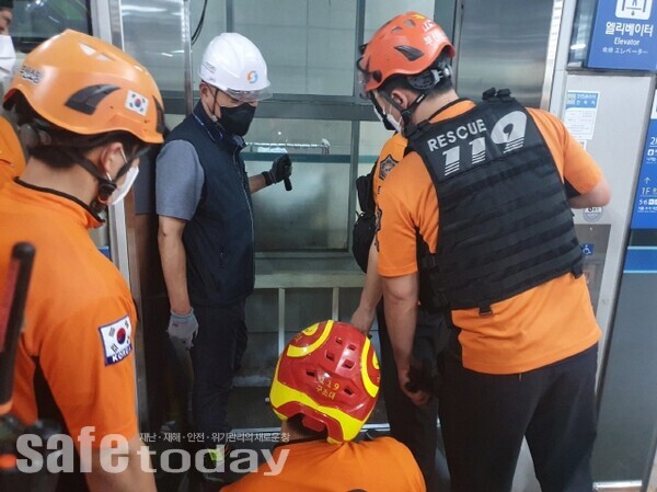 이번 훈련은 전문기관인 한국승강기안전공단 부산경남지사와 119안전센터 및 구조대가 합동으로 실시했다.