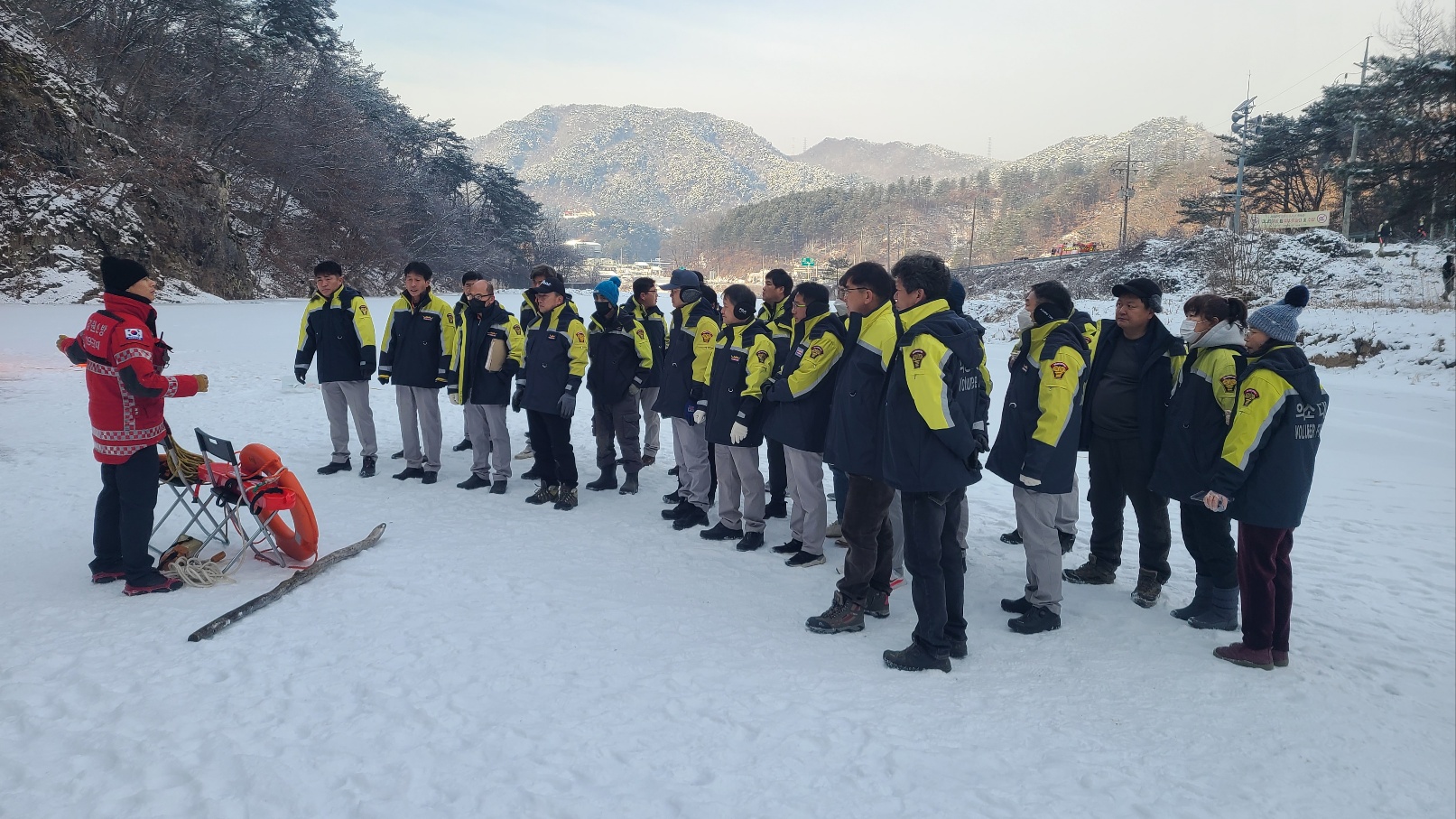 이번 훈련은 동계 수난사고에 대한 현장 안전관리 및 요구조자 응급처치 능력 배양, 수난전문의용소방대와 협업을 통한 현장대응 능력을 강화하고자 횡성구조대와 수난전문의소대가 참가한 상태에서 실시하였습니다.
