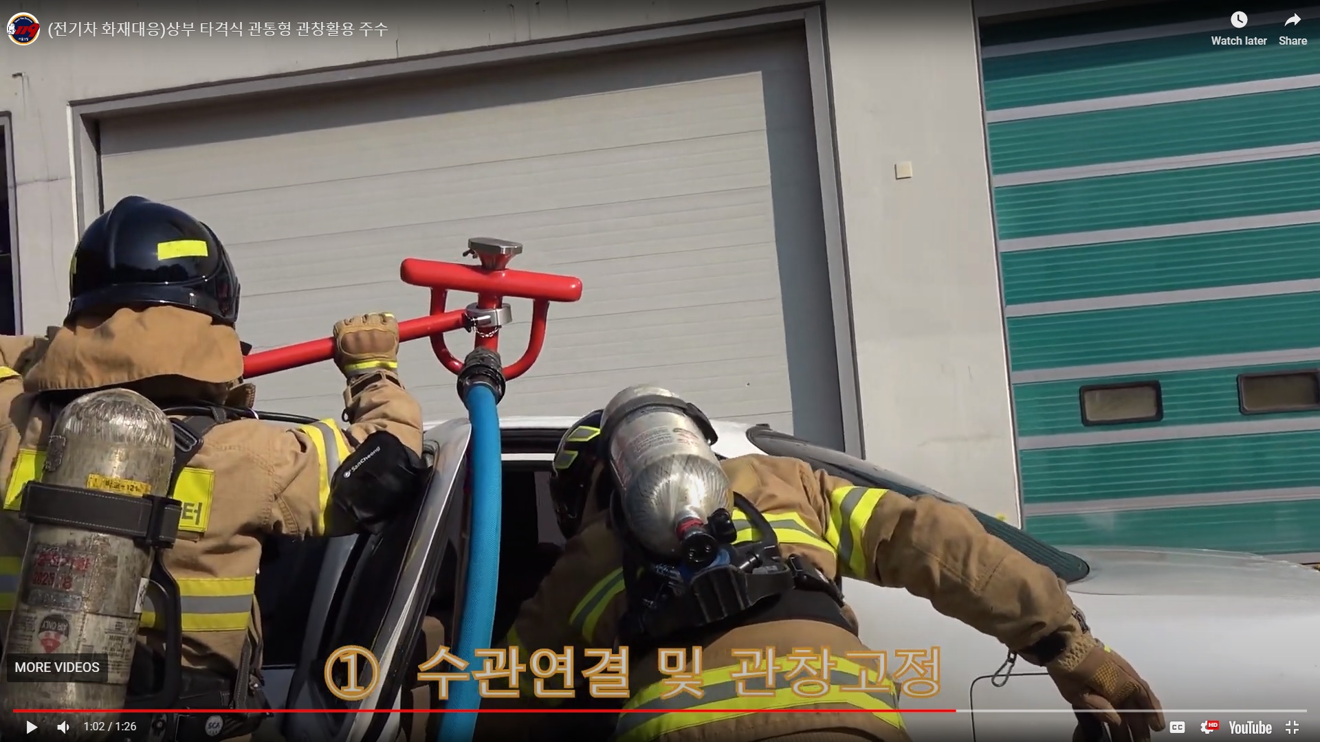 전기차 화재대응, 상부 타격식 관통형 관창활용 주수~ (전기차량화재진압장비, 배터리화재진압