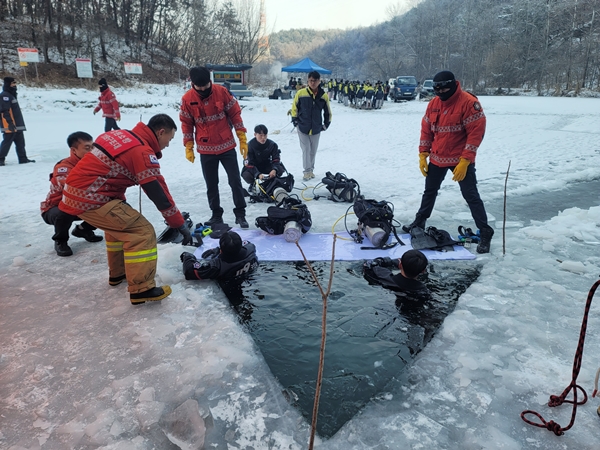 이에 소방서는 내수면 안전사고 방지를 위해 안전수칙 준수를 당부했다. 주요 내용은 ▲얼음 위 낚시, 빙상놀이 금지 ▲사고 발생 즉시 119신고 및 장대, 로프 및 구명환 활용 ▲사고자 구조 시 즉시 외투나 담요 등 사용해 보온 조치 등이다.