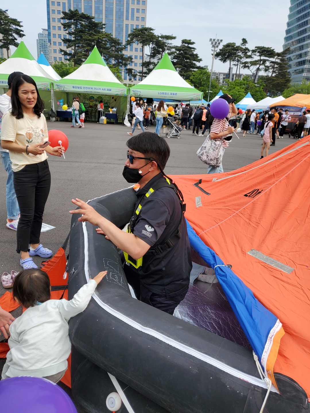 이후에는 서울안전한마당 행사 기간동안 매우 많은 참관객분들이 바이킹 구명뗏목을 탑승해보는 경험을 즐겼습니다.
