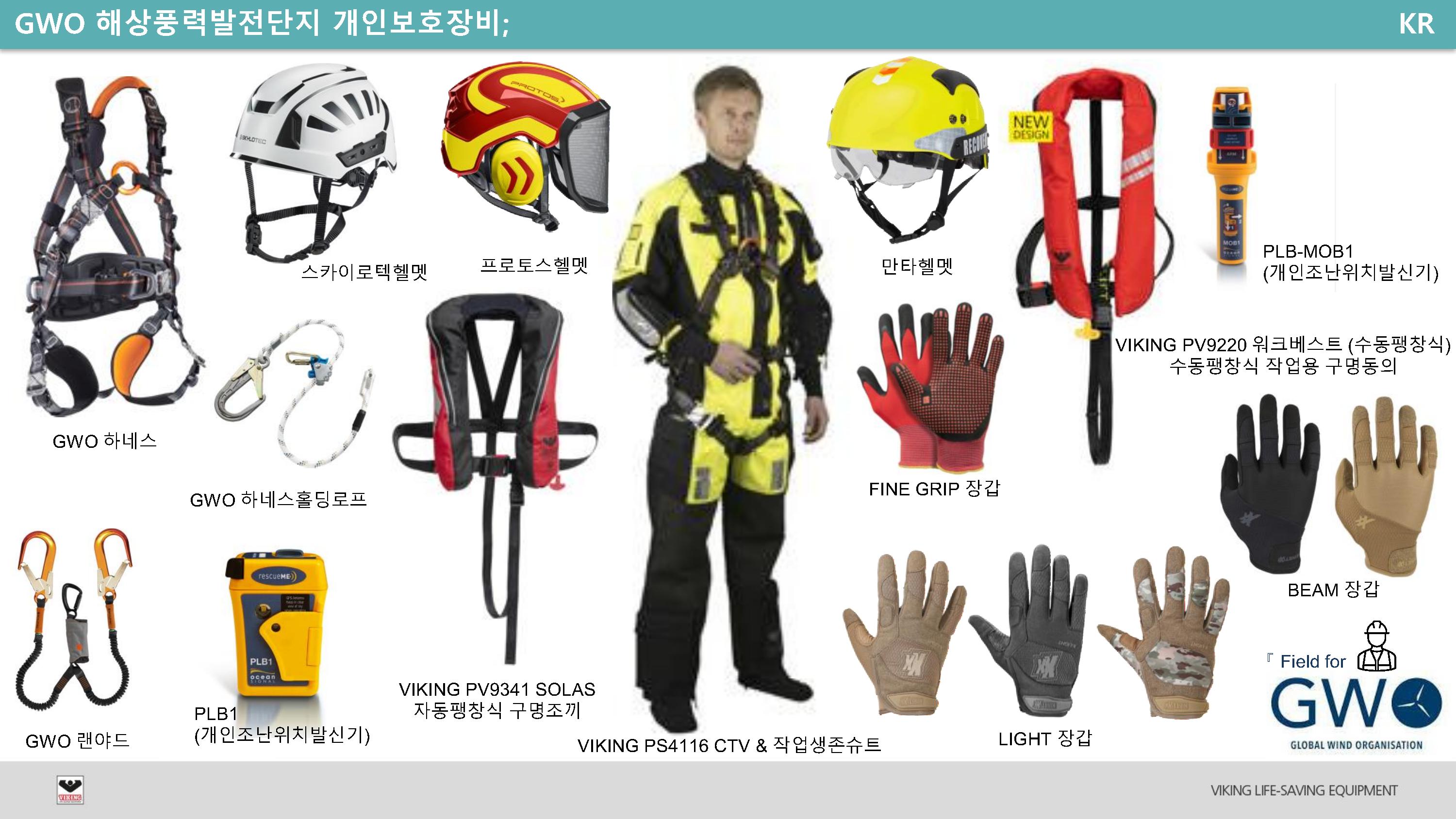 국내 해상풍력발전단지가 활성화 되어감에, 해상풍력발전단지 작업 환경에 걸맞는 개인보호장비 및 생존장비에 관련된 표준화가 자리 잡히고 있습니다. 다행히, 유럽 및 다수 국가에서 바이킹의 장비들이 표준화가 되어 있다보니, 국내 환경에도 자연스럽게 표준화가 되어가고 있습니다.