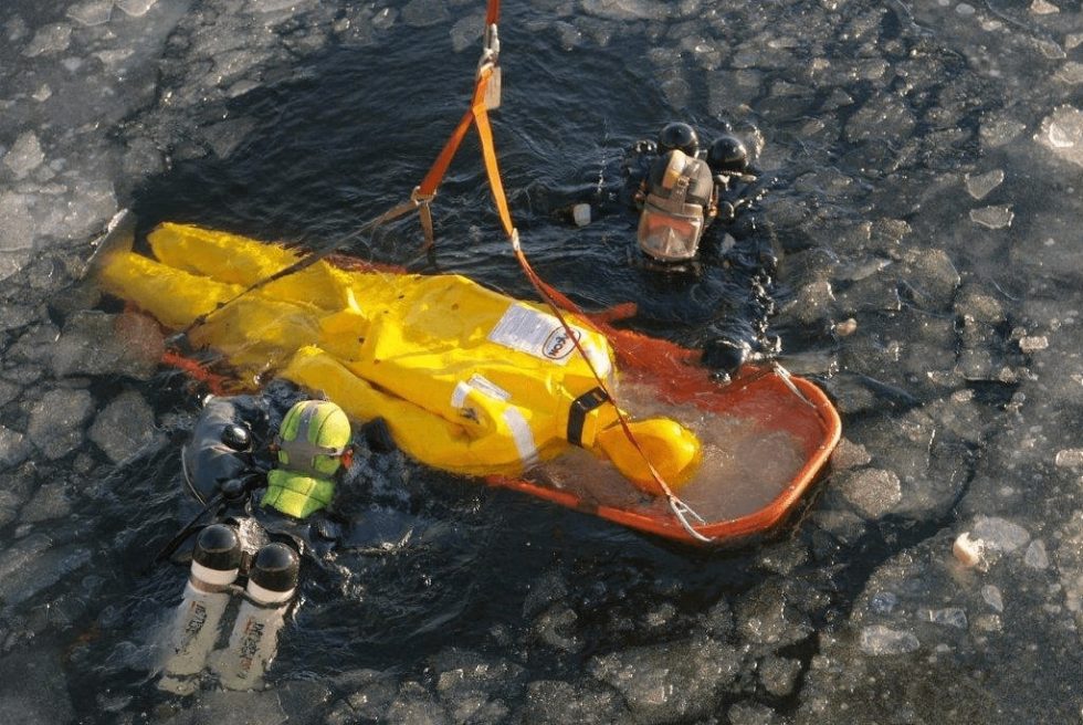 잠수구조훈련을 위해서 더미를 잠수 시킬 수 있습니다.
