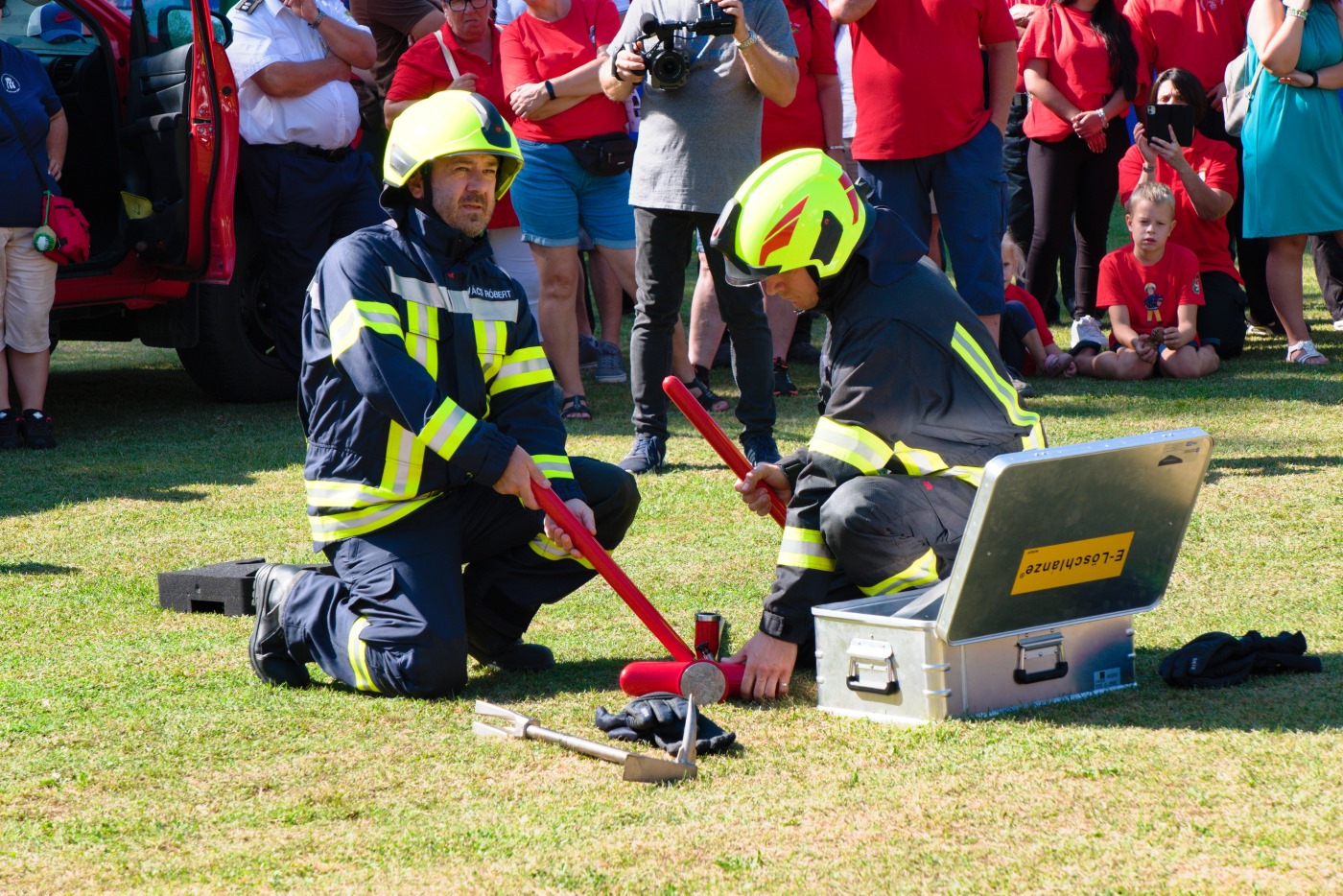 장비를 꺼내고, 조립하고, 열폭주 지점을 측정하고, 소화수를 분사하고, 차량 외부에서 타점에 꼽고, 기다리면 됩니다.