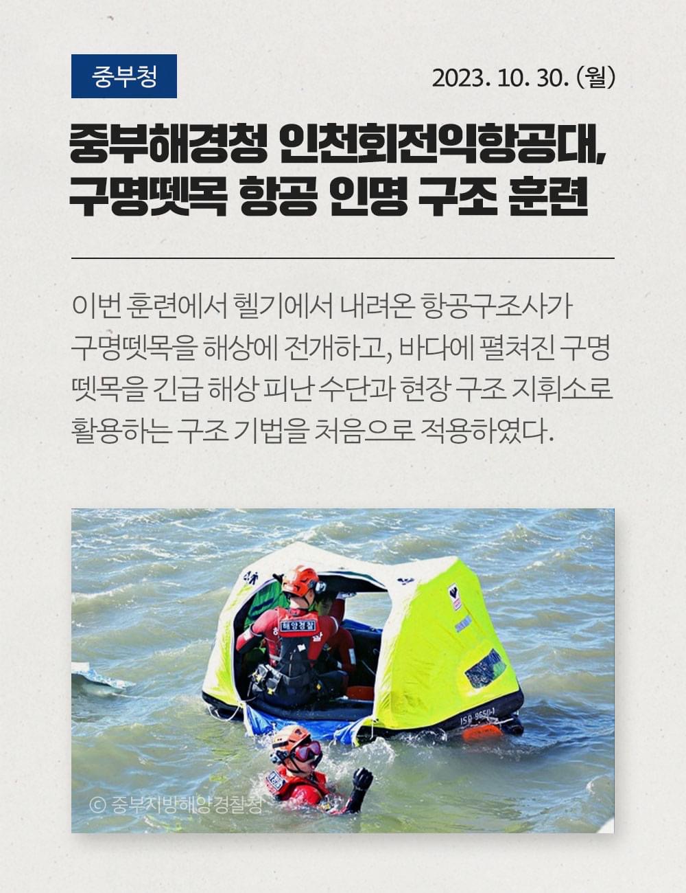 중부해경항공대에서 운영중인, 헬리콥터 다수인 구조용 투척식 구명뗏목을 활용한 훈련이 운영되었습니다.