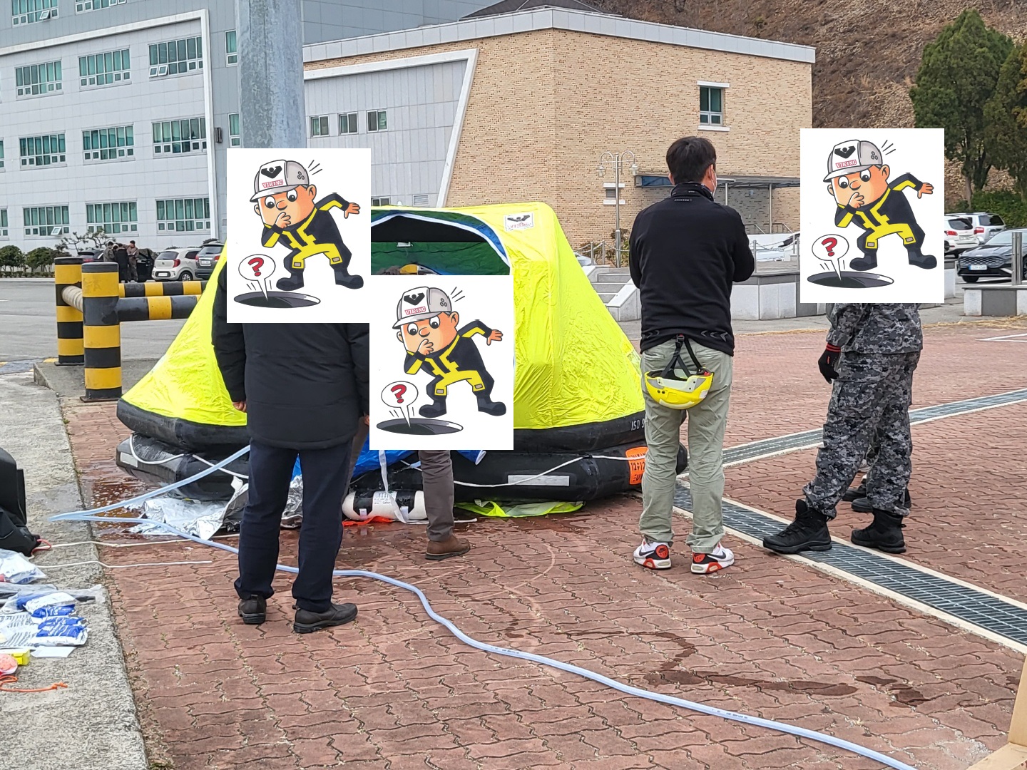 -. 기상 악화인 경우에는 헬리콥터에서 직접 투하하여 자동 팽창시켜 요구조자들에게 접근 유도 및 구조사 협력.