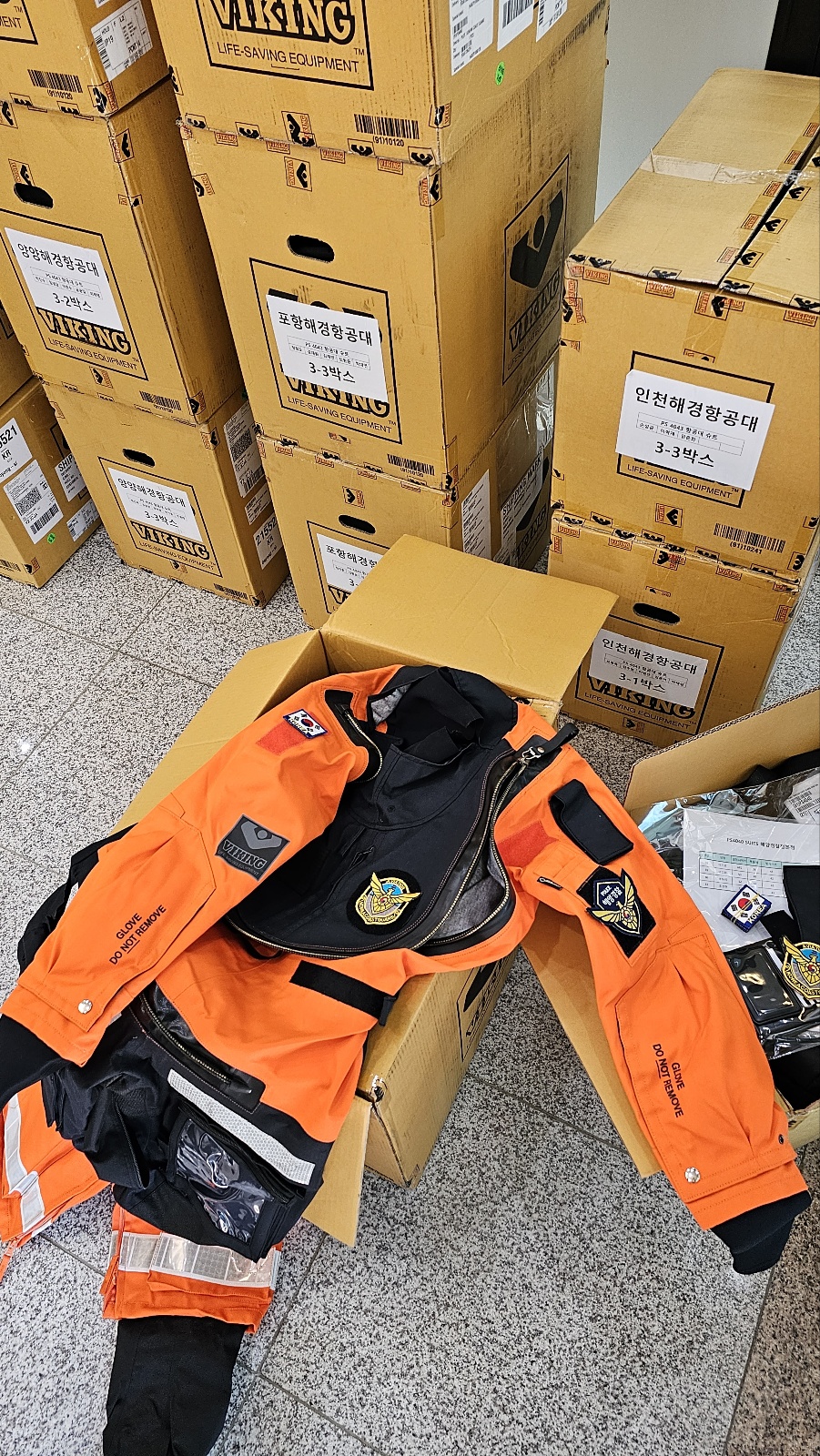 본청 항공장비 담당자분들의 다수번 확인과 논의 및 신속한 대응으로, 전국 대다수의 해양경찰 항공대에 바이킹 헬리콥터 구명복(생환복)이 일괄적으로 공급이 완료되었습니다. 제주 해경항공대 및 일부 누락된 항공대와 누락된 인원들에 대해서는 후속 공급이 진행될 예정입니다.