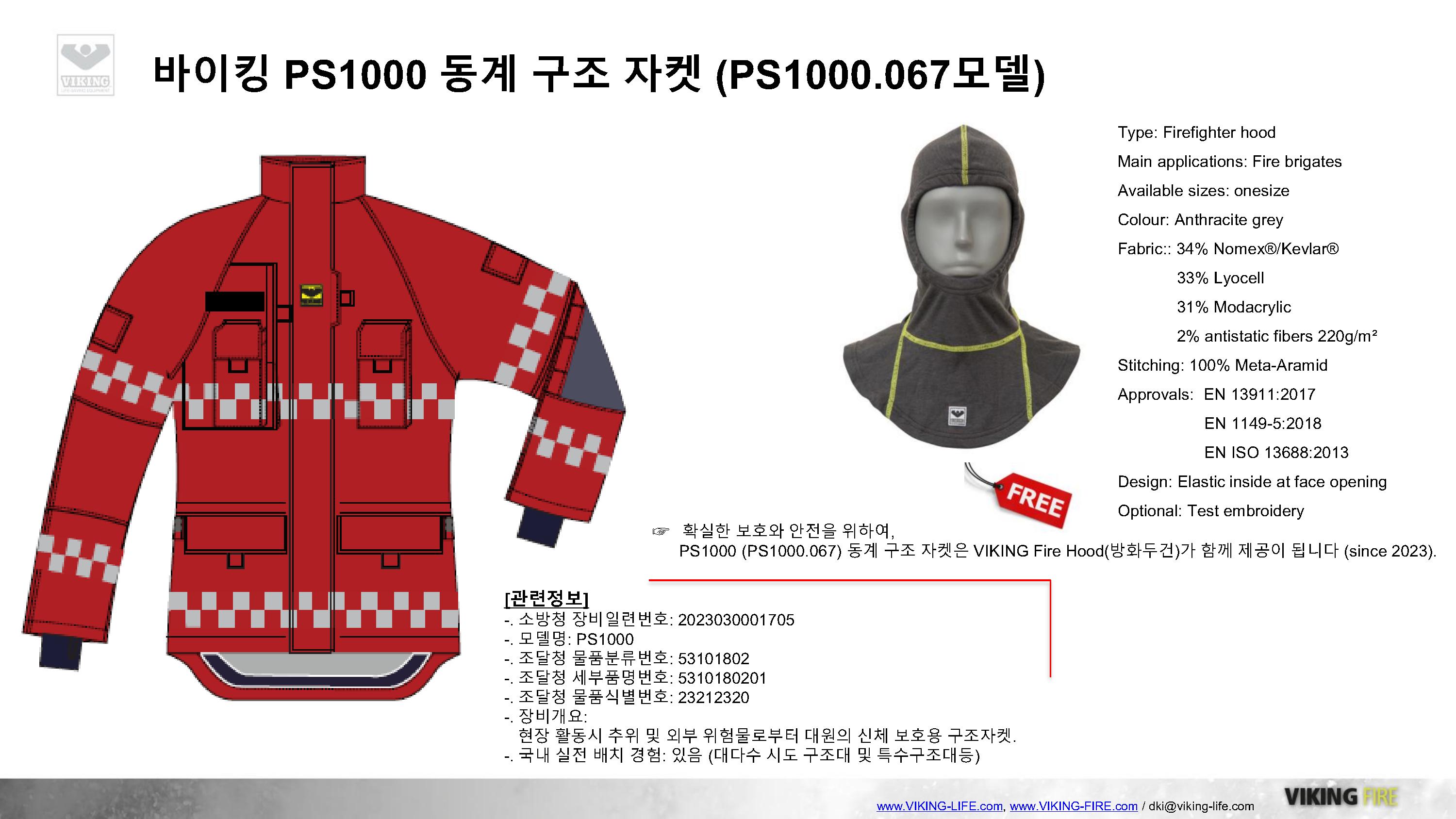 동계용 소방관 현장활동을 위한 구조복의 정의, 랍스터방한자켓 바이킹 PS1000 동계 방한자켓.