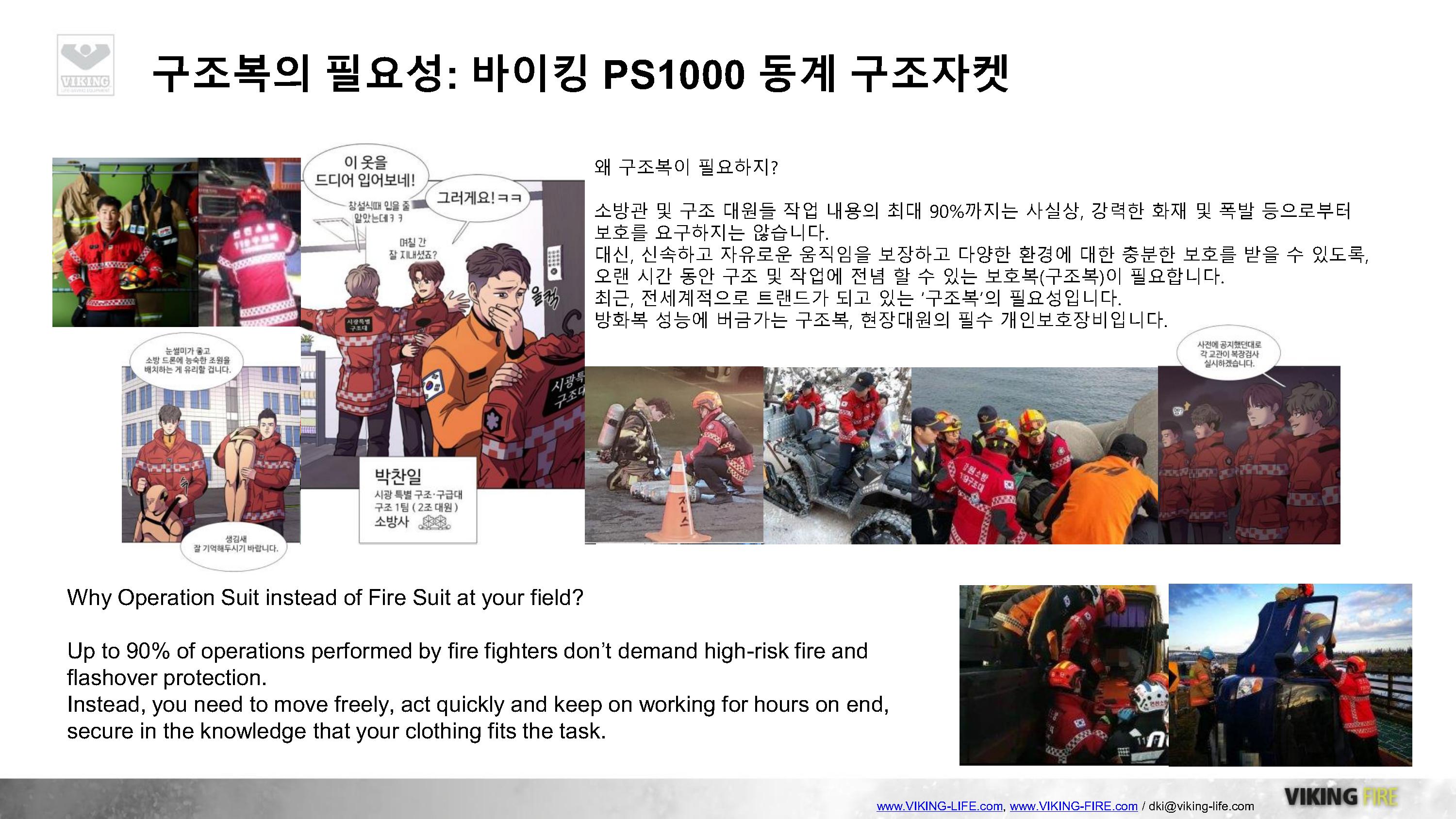 드라마와 영화, 웹툰에도 표준되는 소방관 구조대원 동계용 방한자켓의 대명사, 바이킹 PS1000.067 동계 방한자켓.