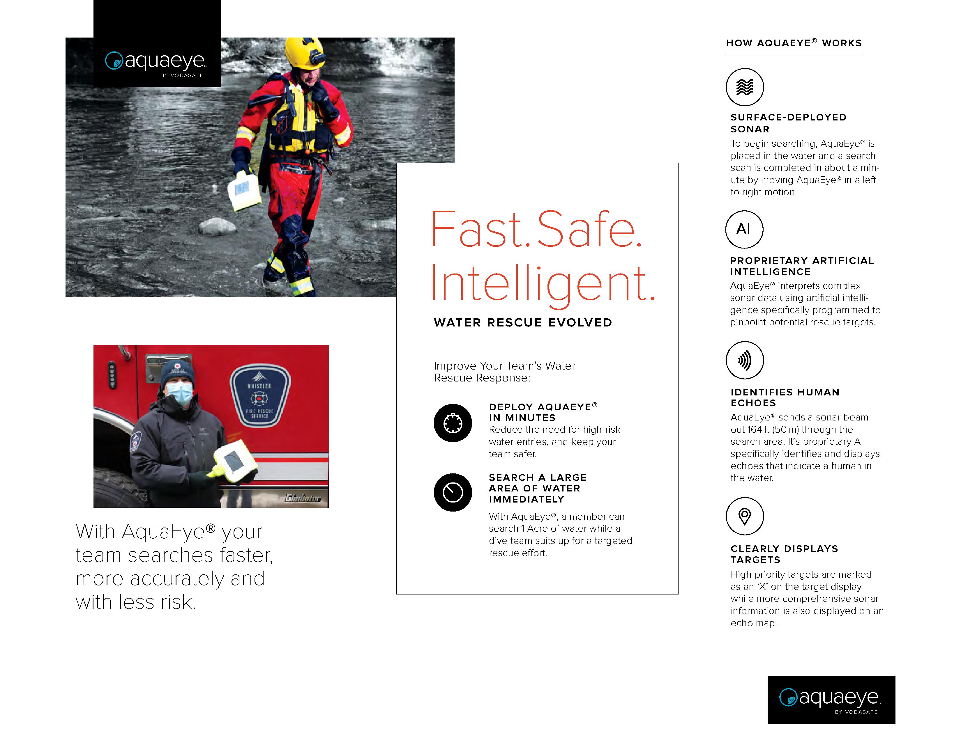 물속을 보는 눈, 아쿠아아이(수중아이)~ 수중아이는 물속에서 침수자를 수색할 수 있는 세계 최초의 휴대용 수중 소나 탐지기입니다. 울트라소나와 인공지능 기술을 적용하여 물속에 있는 침수