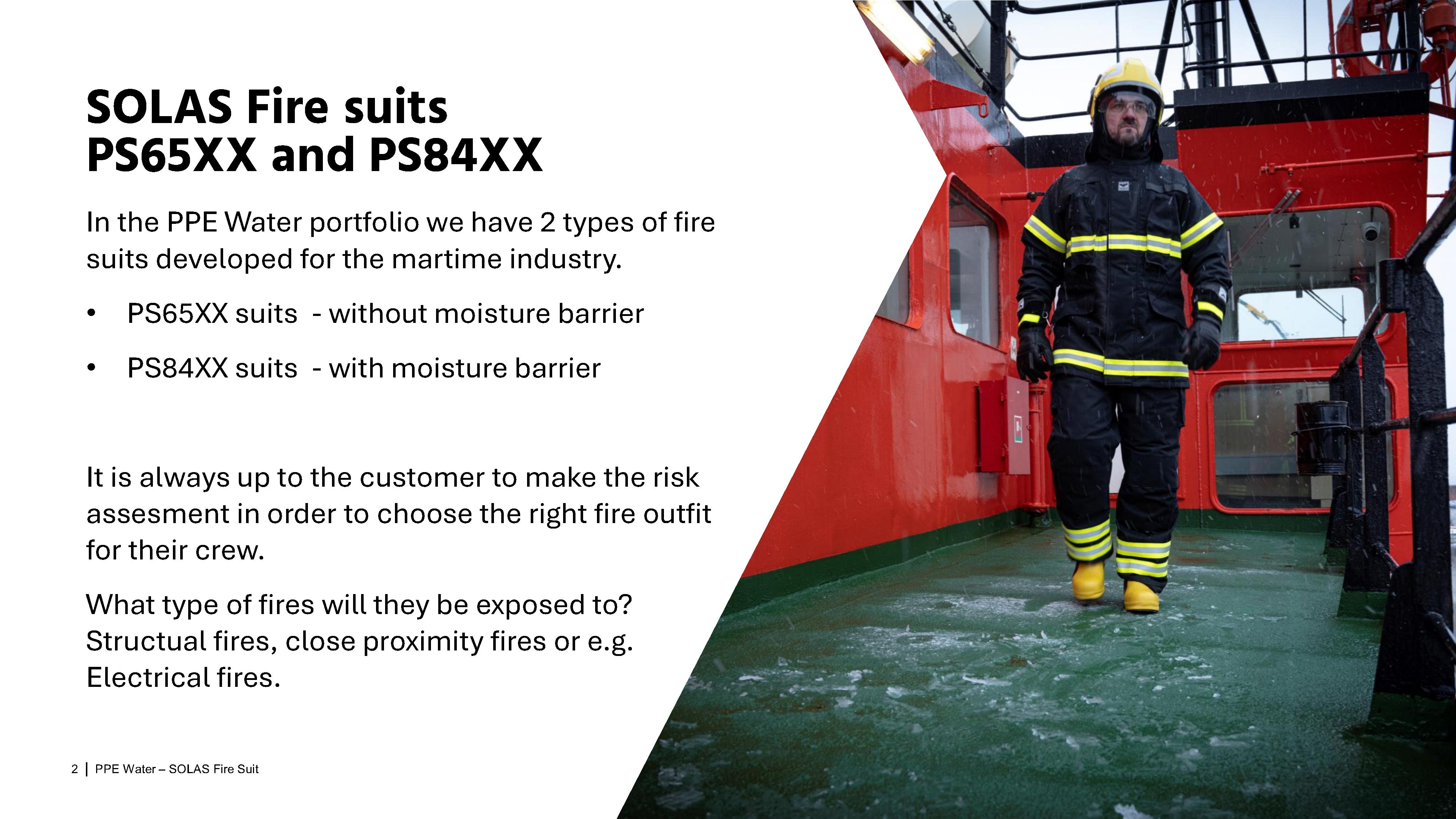 SOLAS 규정에는 방화복 성는 'Level 1'(레벨1, X1) 또는 'Level 2'(레벨2, X2)를 나누어 결정하지 않고 있습니다. 하여, 규정상으로는 '레벨1(X1)'이나 '레벨2(X2)'의 방화복을 적용할 수 있습니다.