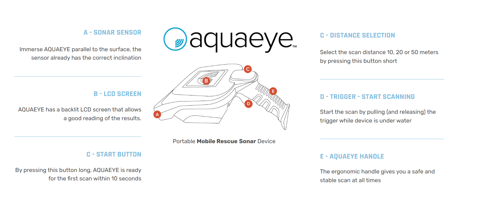 수중아이는 물속에서 침수자를 수색할 수 있는 세계 최초의 휴대용 수중 소나 탐지기입니다.