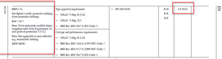2024년 8월 25일까지는 EN469:2005 기준 승인된 해상용 방화복을 사용할 수 있습니다.