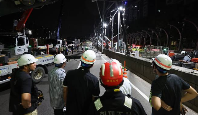 소방당국은 "철거 작업 중 방음터널 지지대가 무게를 견디지 못하고 균형을 잃어 연결돼 있던 구조물들이 차례대로 무너져 발생한 상황으로 보고 있다"고 밝혔다.