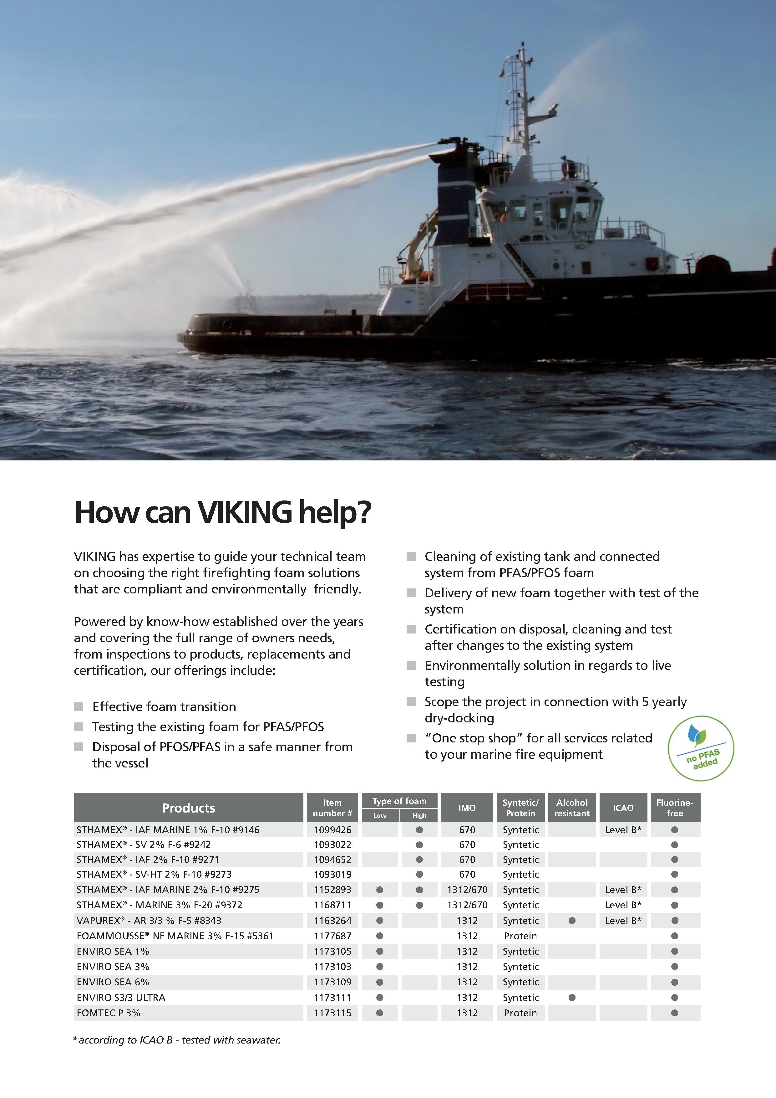 VIKING이 공급하고 관리하는 유류화재 소화용 거품소화기(Foam) 약재는 이미 PFOS/PFAS가 미함유된 친환경 소재이며, 다음과 같은 관리를 제공해 드릴 수 있습니다.