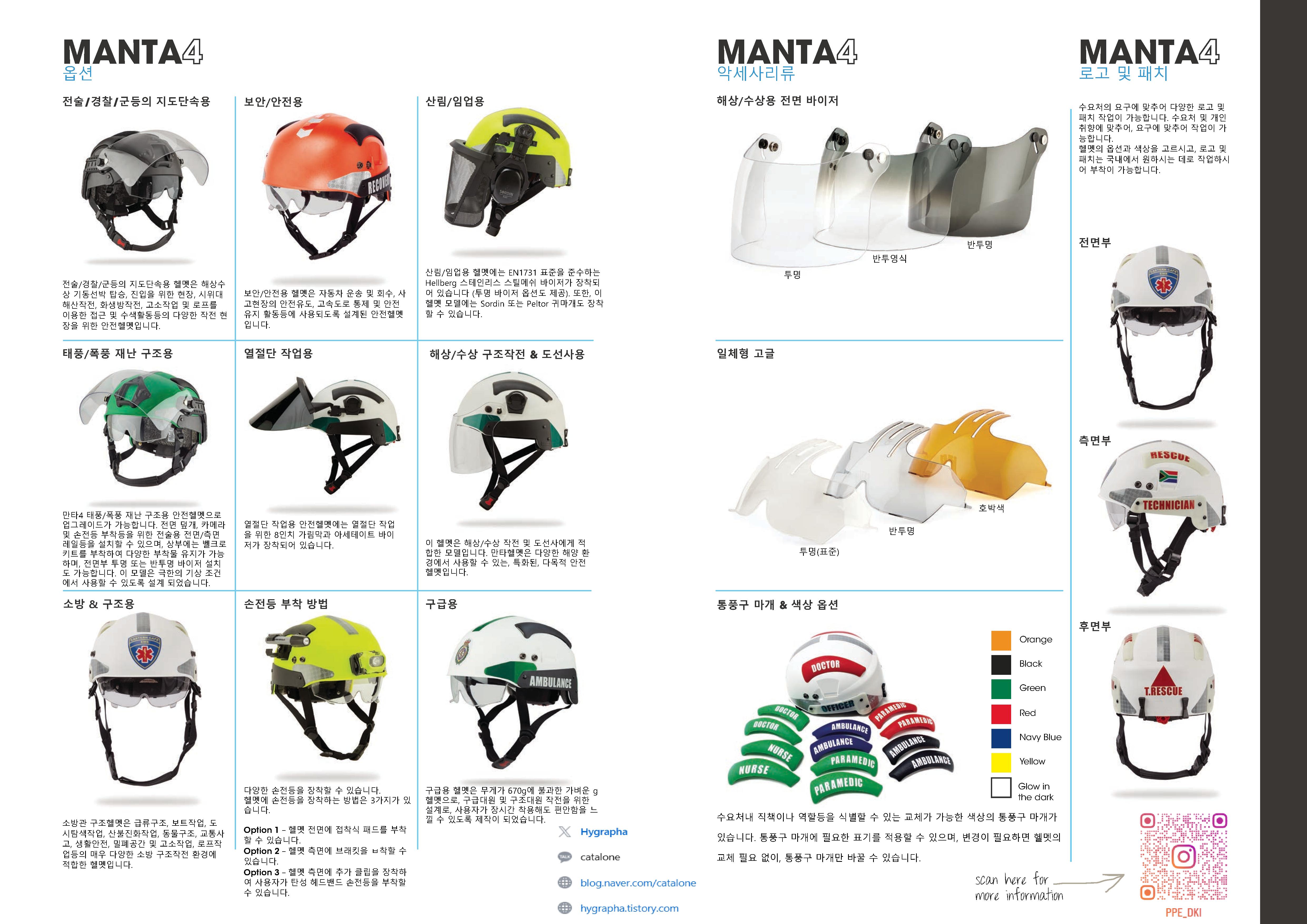 MH4 만타 구조안전헬멧은 다양한 악세사리류를 장착할 수 있는 고성능 다목적 기술구조안전헬멧입니다.