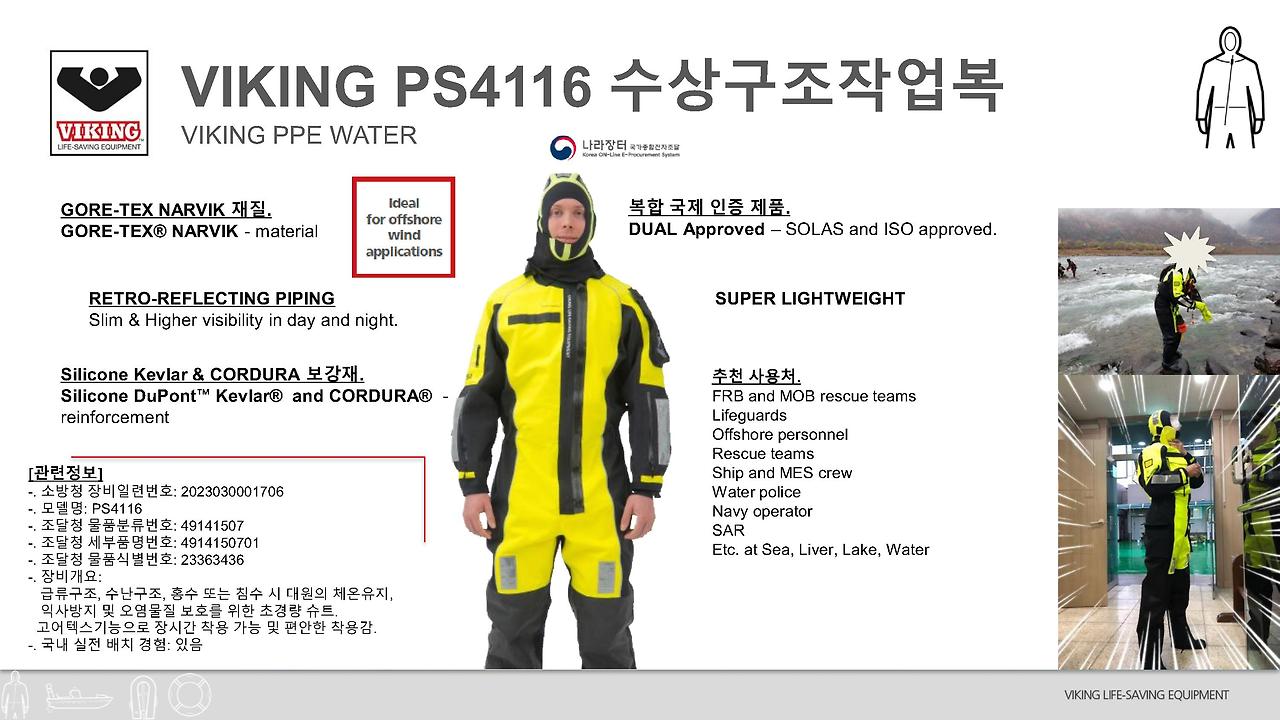 #풍수해재난대비 #소방관비옷 #소방정보호복 #해상풍력발전작업복 #CTVsuit #GWOsuit #수상구조작업복 #바이킹PS4116 #수난구조작업복 #수해재난보호복 #하천범람보호복 #호수범람보호복 #현장대원비옷 #태풍재해보호복 #폭풍재해보호복 #강범람보호복 #계곡범람보호복 #폭우재해보호복 #오염수보호복 #집중호우보호복 #현장대원우의 #침수범람보호복 #엘리뇨보호복 #풍수재해보호복 #세미드라이슈트 #홍수재해보호복