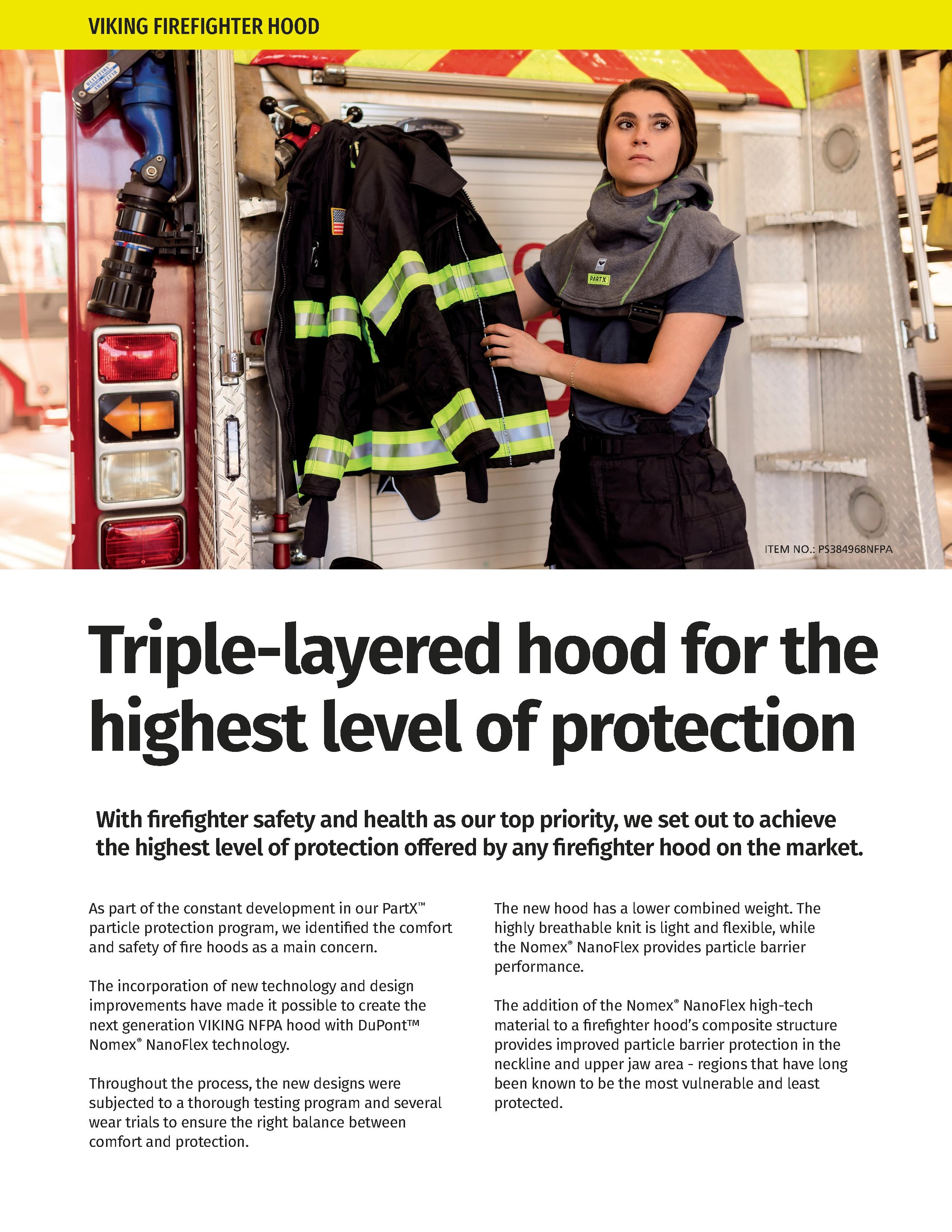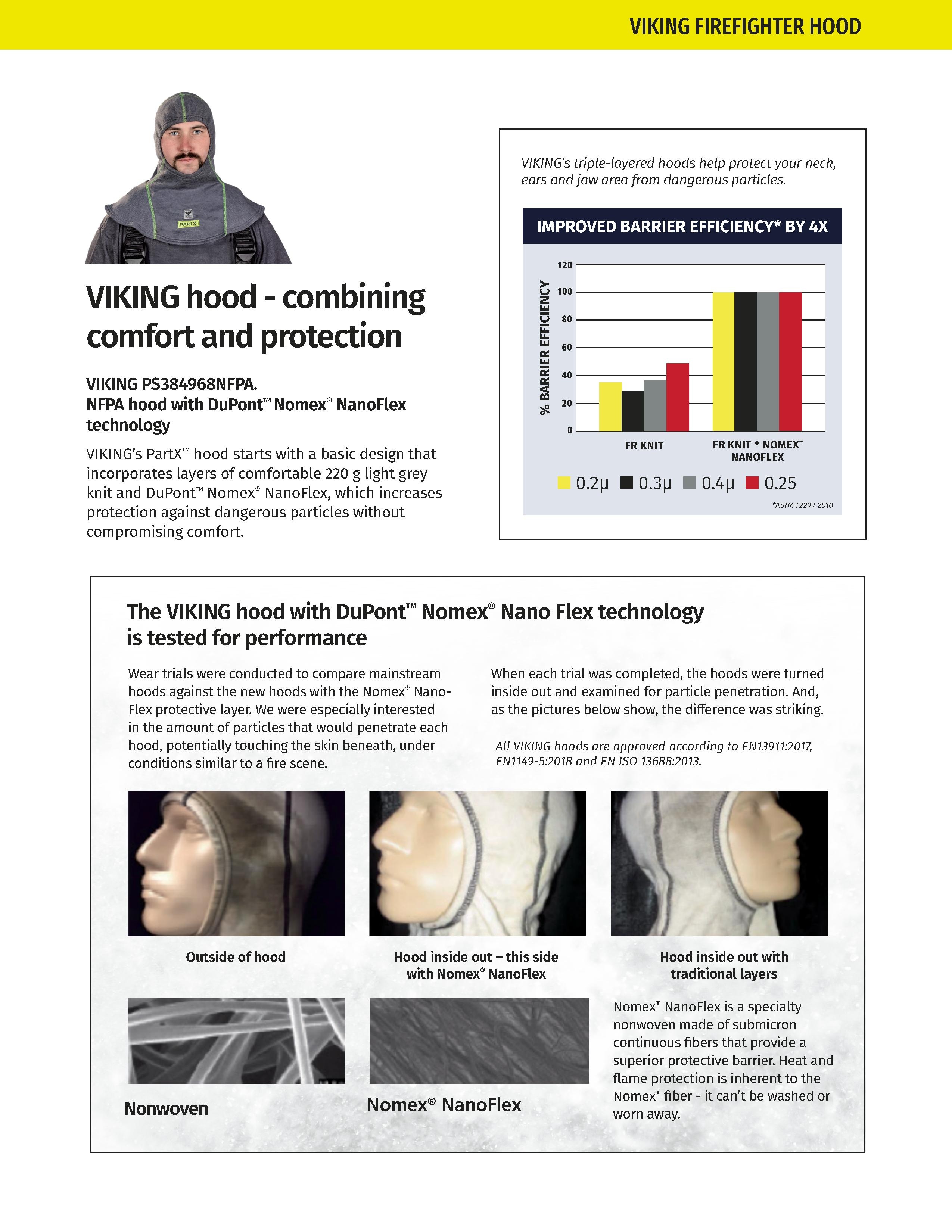 바이킹 방화복의 특별한 컨셉인 파트엑스(PartX) 컨셉에 맞추어, NanoFlex(나노플렉스) 기술이 접목된 소방관 건강/복지 방화두건, 분진차단 방화두건 바이킹 파트엑스 방화두건은 유사품과 다릅니다.