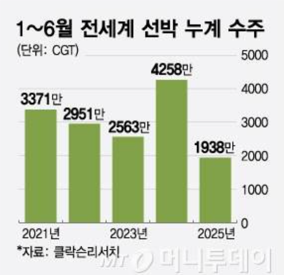 그럼에도 '피크 아웃(peak out, 고점 이후 하락)'에 대비해야 한다는 말은 꾸준히 나온다. LNG 운반선 위주의 사이클 이후를 제대로 대비하지 않으면 시장에서 살아남기 힘들 것이란 지적이다. 올 상반기 전체 조선사 수주량이 1938만CGT(선박 건조 난도를 고려해 환산한 t수)로, 전년비 54% 감소한 것으로 집계된 후 이같은 목소리에 더욱 힘이 실린다.