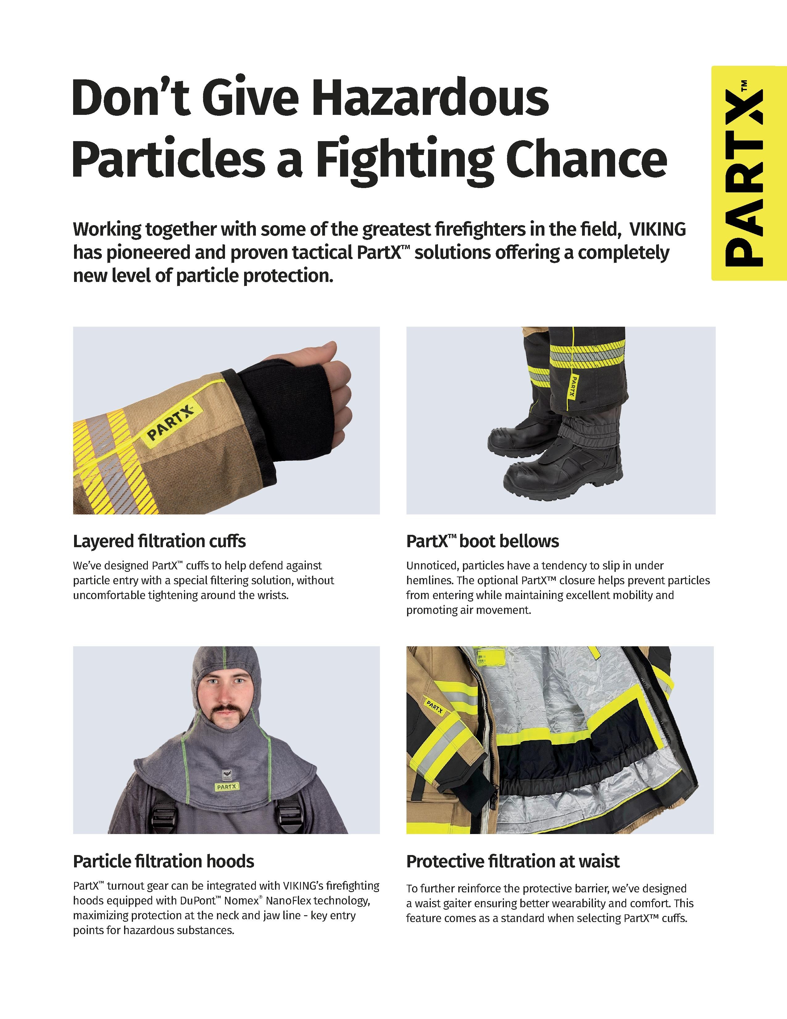 바이킹 파트엑스 방화복과 파트엑스 방화두건은 소방관들의 건강과 안전을 최우선으로 고려한 고급 방화복입니다. 특히, 화재 현장에서 발생하는 유해 분진과 오염물질을 차단하는 데 중점을 둔 디자인이 특징입니다.