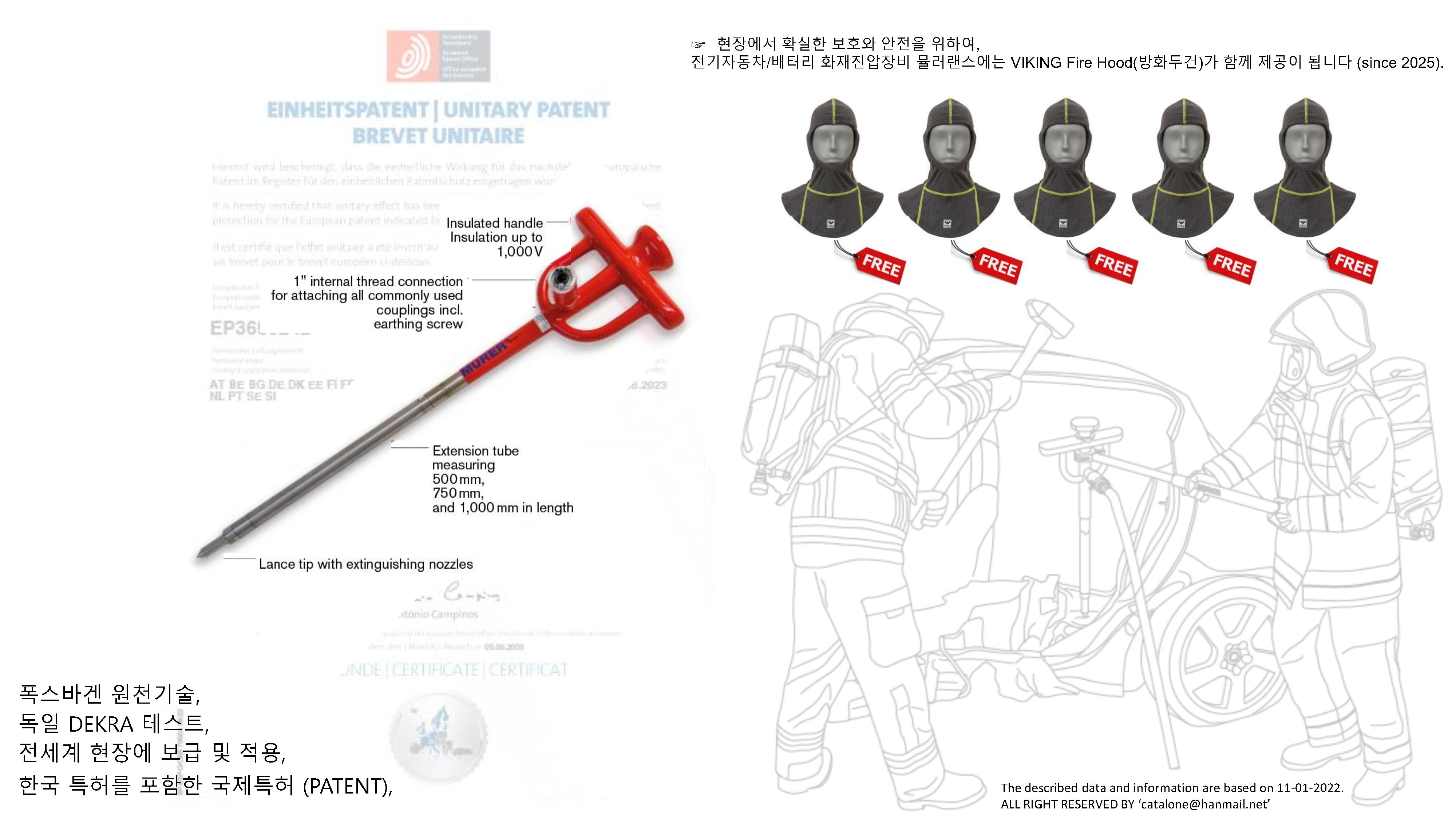 폭스바겐 원천기술과 독일 DEKRA 인증기관 테스트 보고서, 공급 확인서(DOC), 국내 특허를 포함한 국제 특허 인증서를 받으실 수 있으며, 뮬러랜스 1세트에 5개의 바이킹 EN 방화두건(덤 앤 덤덤덤덤)을 함께 운영하실 수 있습니다.