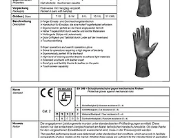 EN 388; A2 (마모저항), B1(절단저항), C2(인열저항), D1(펑크저항)
