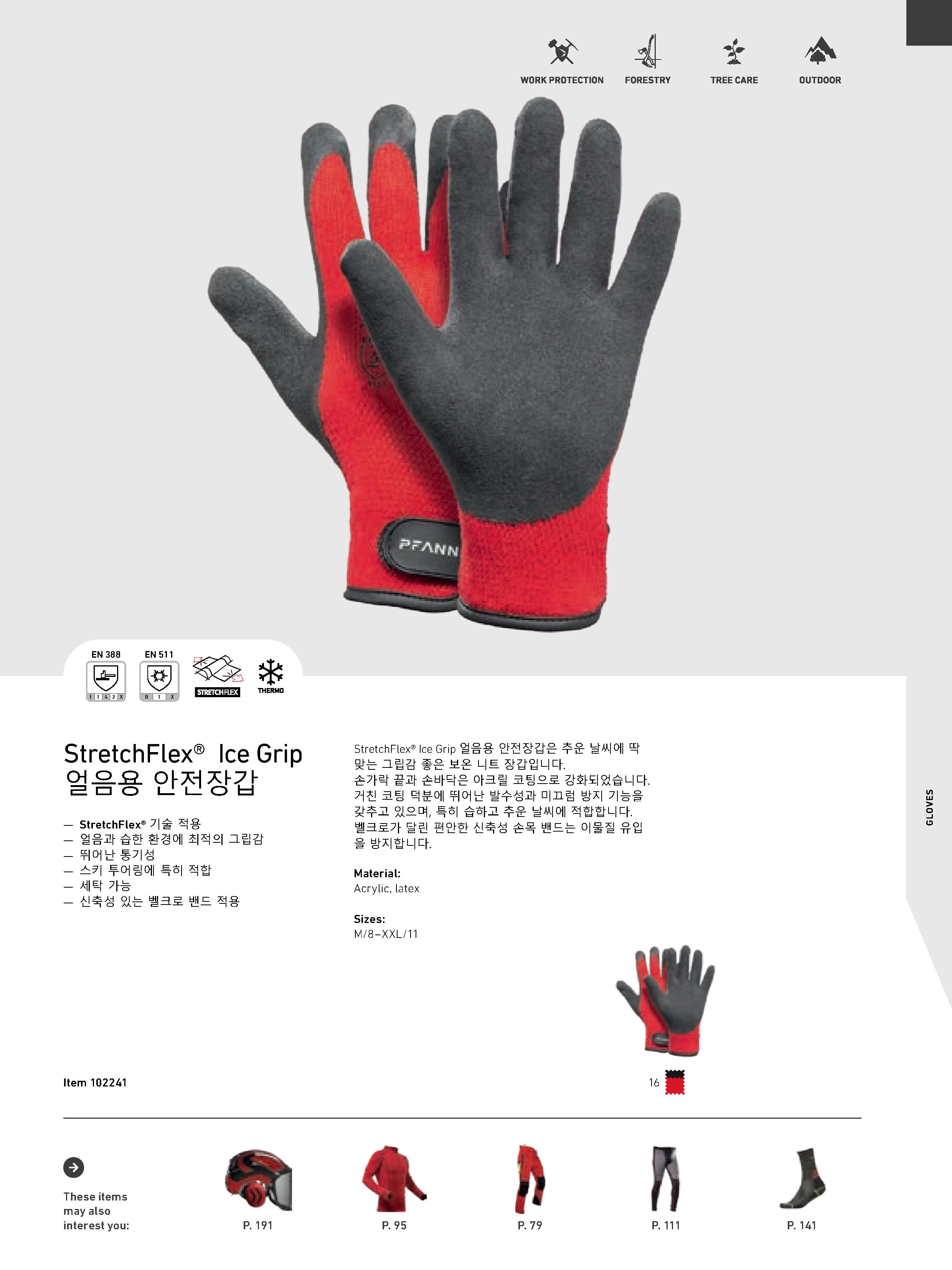얼음용 안전장갑, 패너 스트레치 아이스그립 안전장갑~